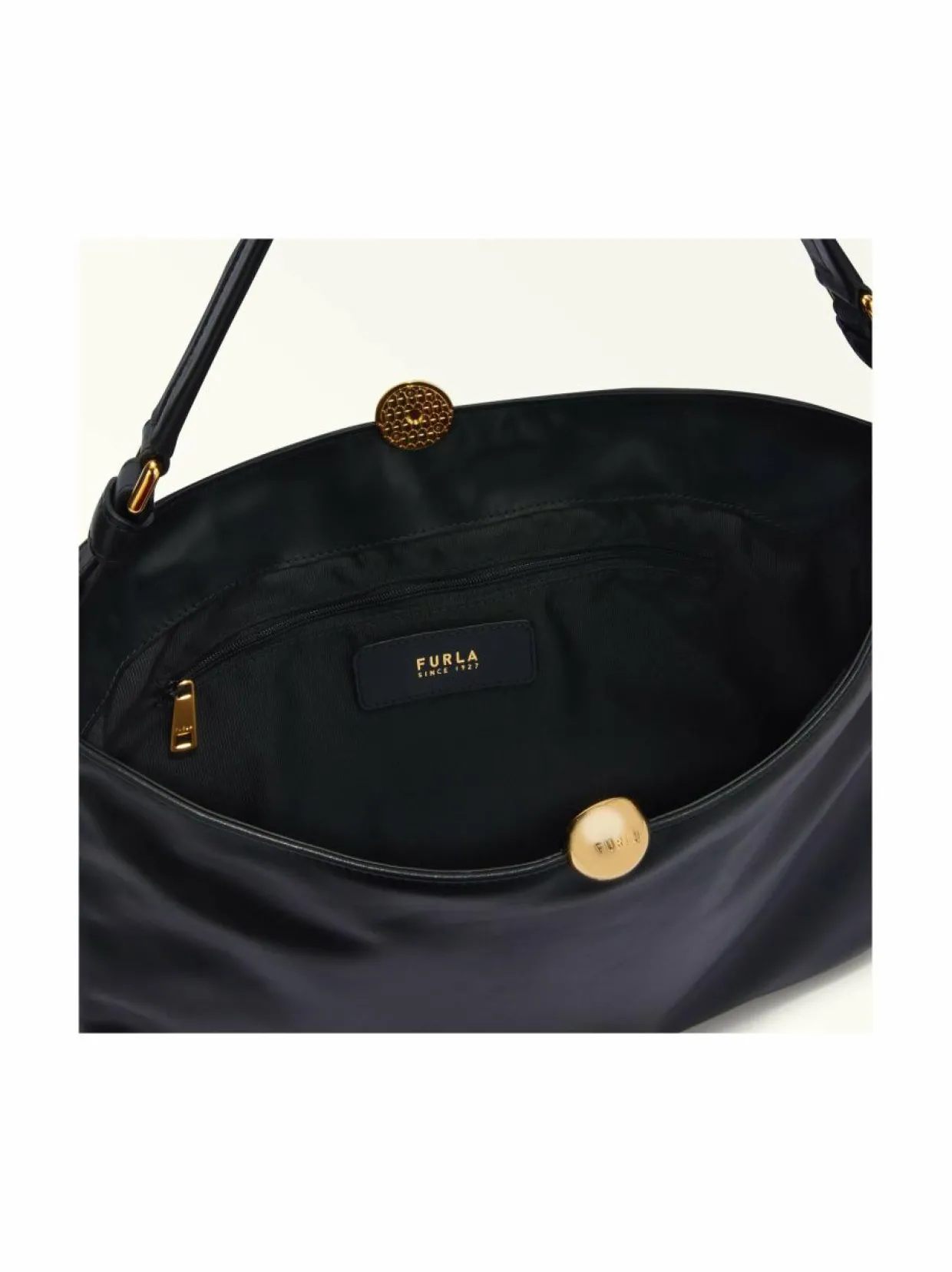 Furla Sfera Soft L -laukku yhdistää hienostuneen muotoilun ja käytännöllisyyden. Pehmeä nappanahka tuntuu ylelliseltä ja luo kauniin luonnollisen laskostuksen, jota täydentää elegantti pyöreä Sfera-koriste. Tilavassa olkalaukussa on hyvin järjestetty sisätila, johon mahtuvat kaikki päivittäiset tavarasi. Kaksi avointa sisätaskua ja vetoketjullinen tasku pitävät tavarat siististi järjestyksessä. Laukku suljetaan kätevästi magneettinapilla, ja säädettävä nahkahihna lisää käyttömukavuutta.
