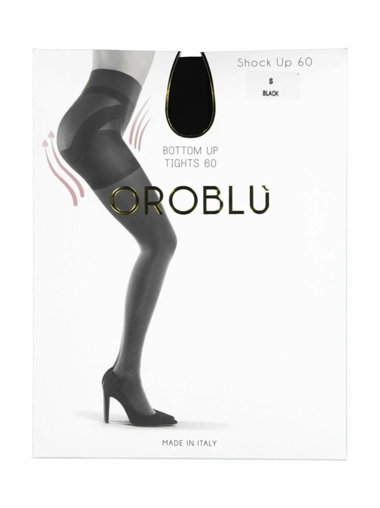 Oroblun Shock Up Bottom Up 60 denierin sukkahousut on muotoiltu nostamaan takamusta ja hoikentamaan vyötäröä, lantiota ja reisiä.