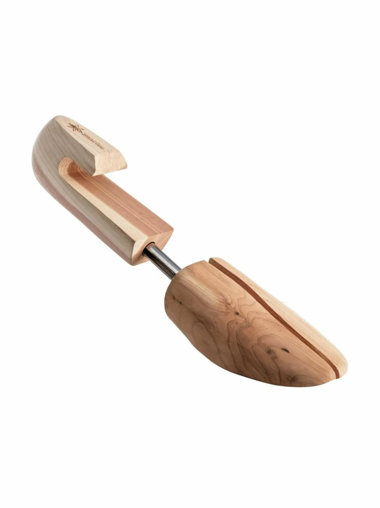 Springyard-kenkälestit auttavat kenkiä pysymään muodossaan ja tasoittavat kengät kärkeen muotoutuvia ryppyjä. Valmistettu puusta ja metallista.