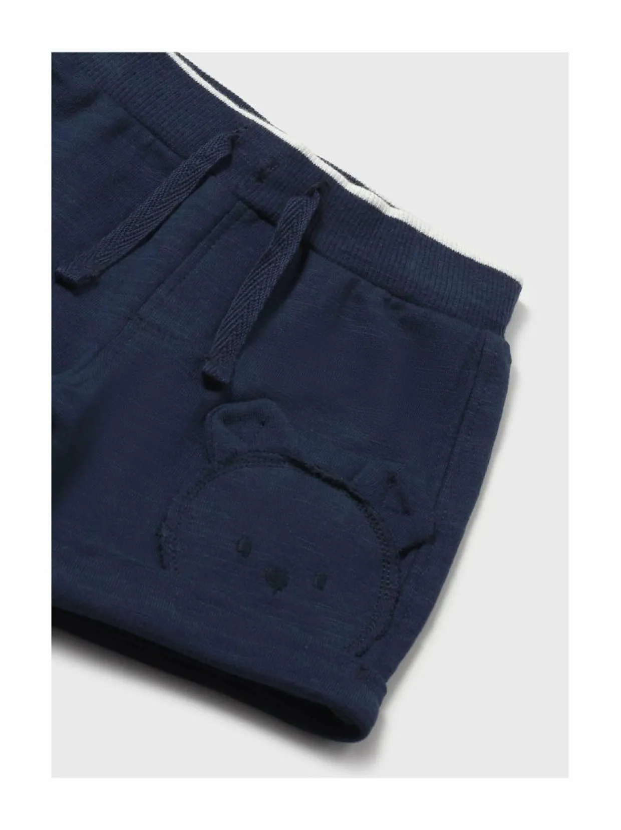 Materiaali98 % puuvilla, 2 % elastaani Hoito-ohjeetKonepesu 30 asteessa. Ei valkaisua, eikä valkaisuaineita sisältäviä pesuaineita. Silitys korkealla lämpötilalla. Ei kemiallista pesua. ValmistusmaaBangladesh VäriNAVY 55 Avainsanatshortsit, lastenvaatteet, puuvilla, Mayoral
