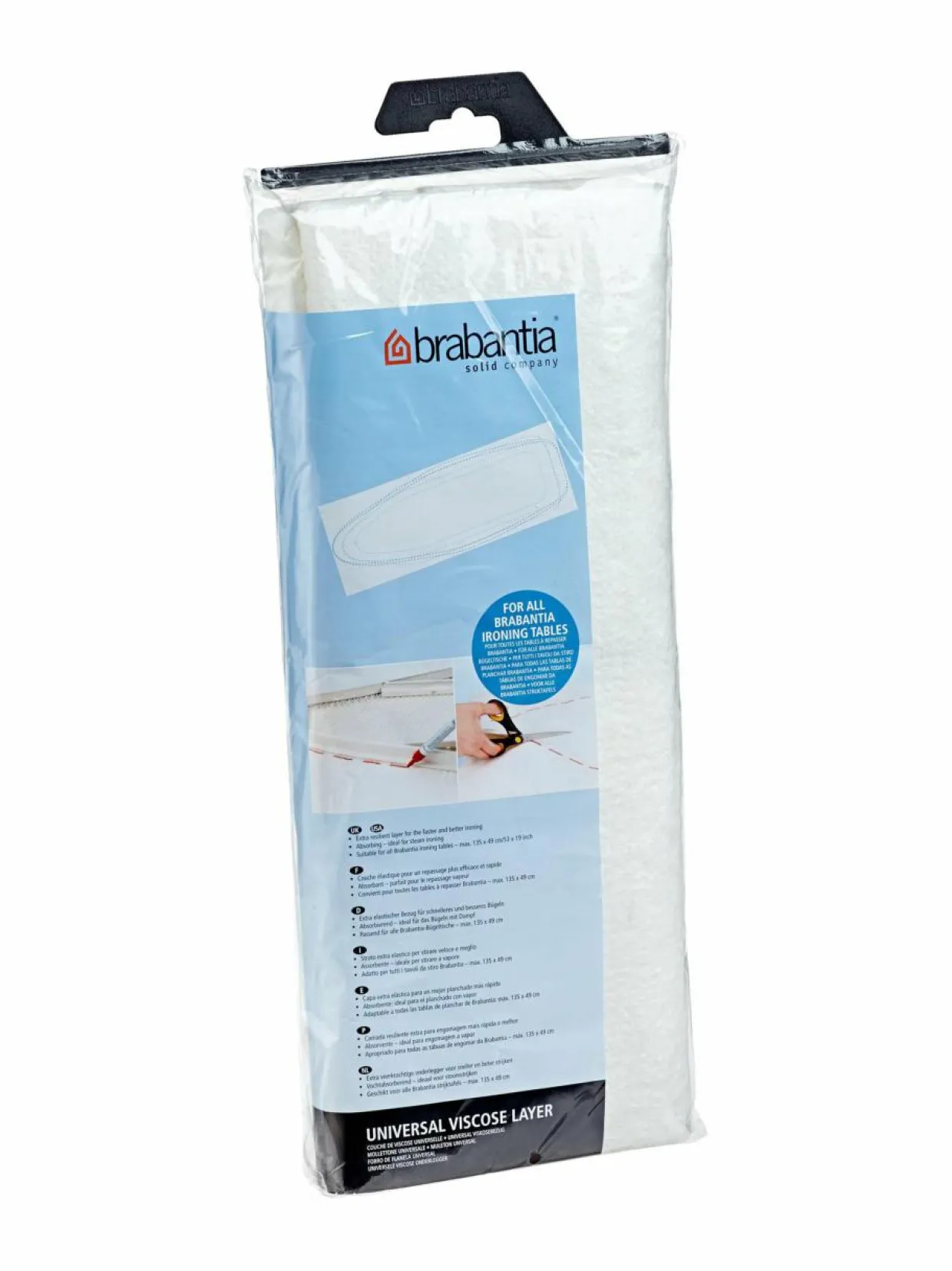 Brabantia- silityslaudan pehmuste on helppo asentaa laudan ja päällisen väliin. Paksu ja joustava pehmuste nopeuttaa silitystä ja parantaa sen tehoa. Pehmuste sopii sekä höyry- että tavalliseen silitykseen. Malli sopii kaikille Brabantian silityslaudoille, maksimimitat ovat 135 x 49 cm (E).