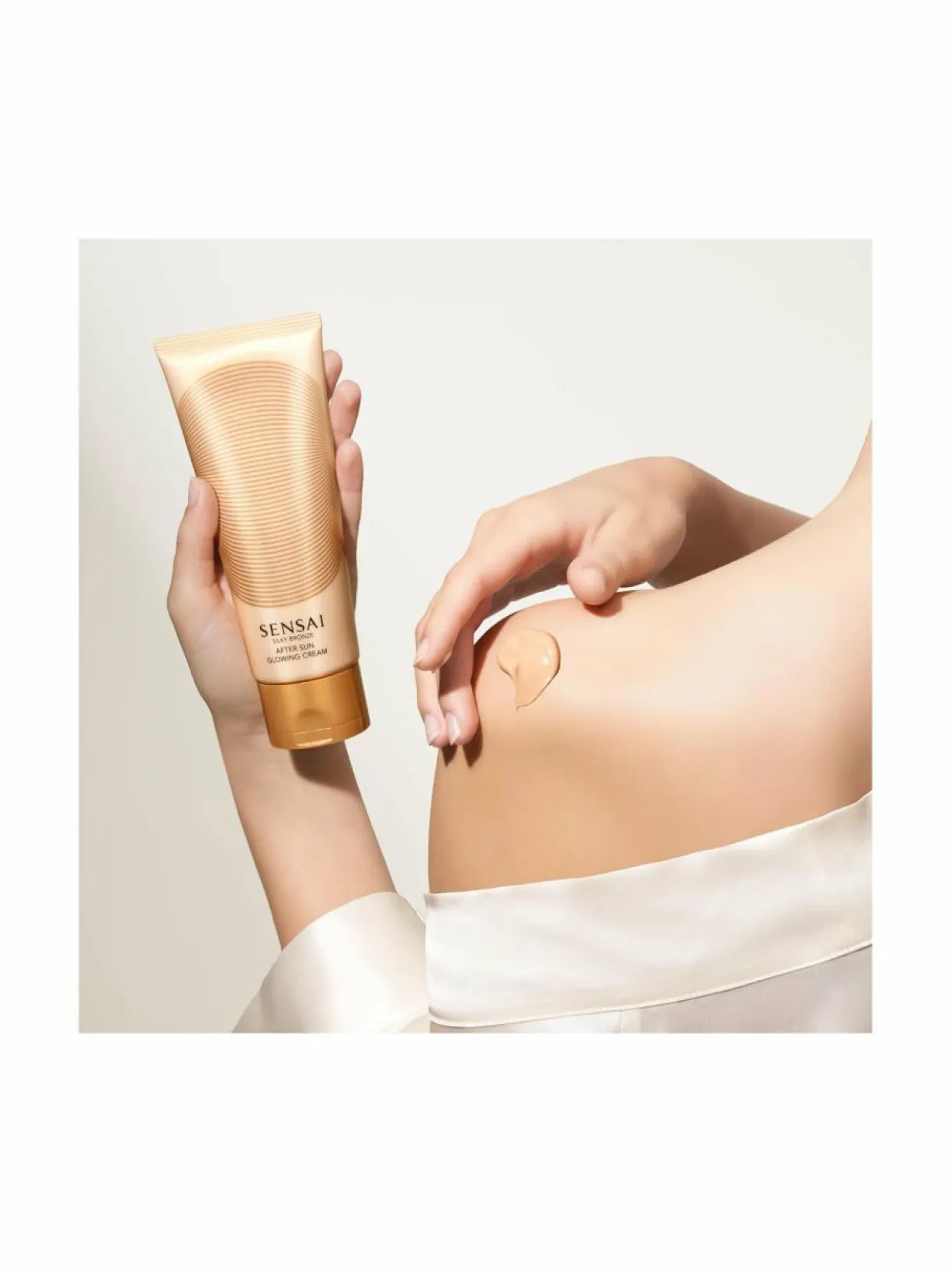 Sensai Silky Bronze After Sun Glowing Cream on ihoa hoitava ja tehokkaasti kosteuttava voide käytettäväksi auringonoton jälkeen. Se levittyy iholle vaivattomasti, ja sen Glowing Formula -yhdiste antaa päivettyneelle iholle kauniin pronssisen hehkun. Lopputuloksena on kaunis silkkinen iho. Voide tuoksuu miellyttävän hedelmäiseltä.