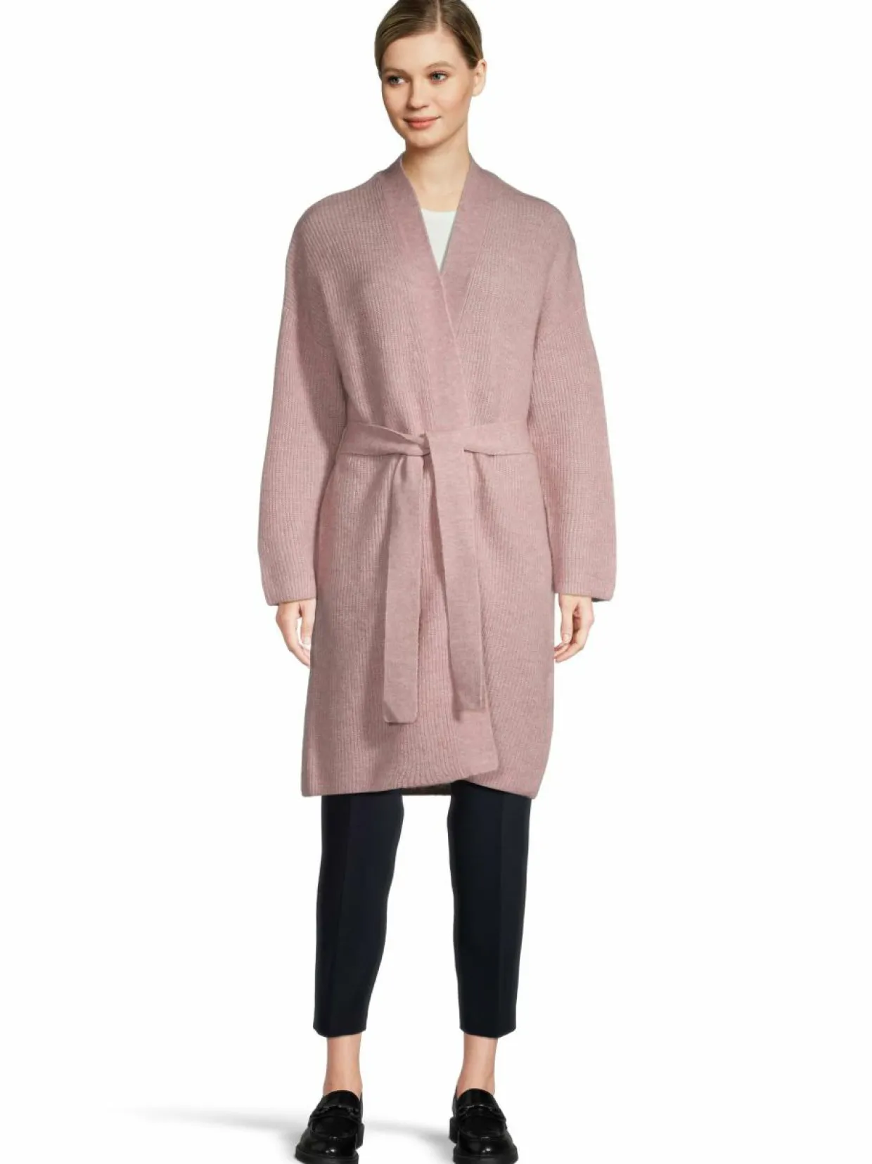 Silvia-pitkä neuletakki on valmistettu lämpimästä villasekoitteesta, johon on lisätty ylellistä mohairia. Materiaali on pehmeää ja miellyttävää ihoa vasten. Rento malli on edestä avoin ja vyötäröltä neulevyöllä sidottava.