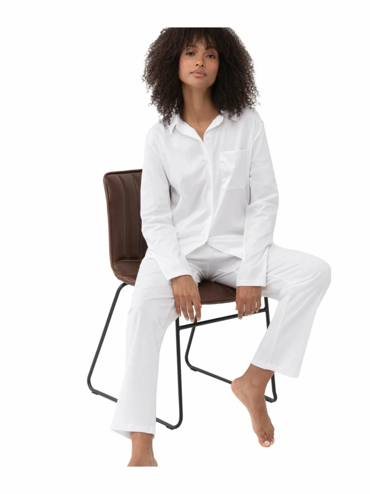 Pehmeän tuntuisesta luomupuuvillakankaasta valmistetut pitkät pyjamahousut nukkumiseen ja rentoihin oleiluhetkiin kotona. Korkealle nouseva, mukavan joustava ja litteä vyötärönauha.