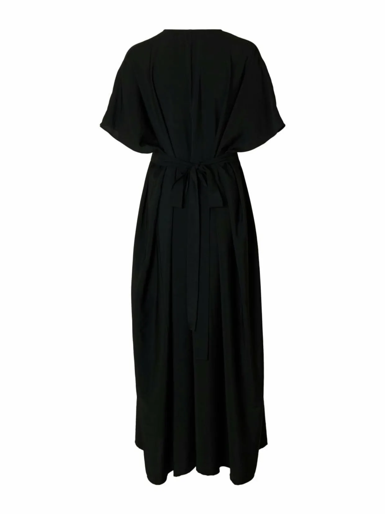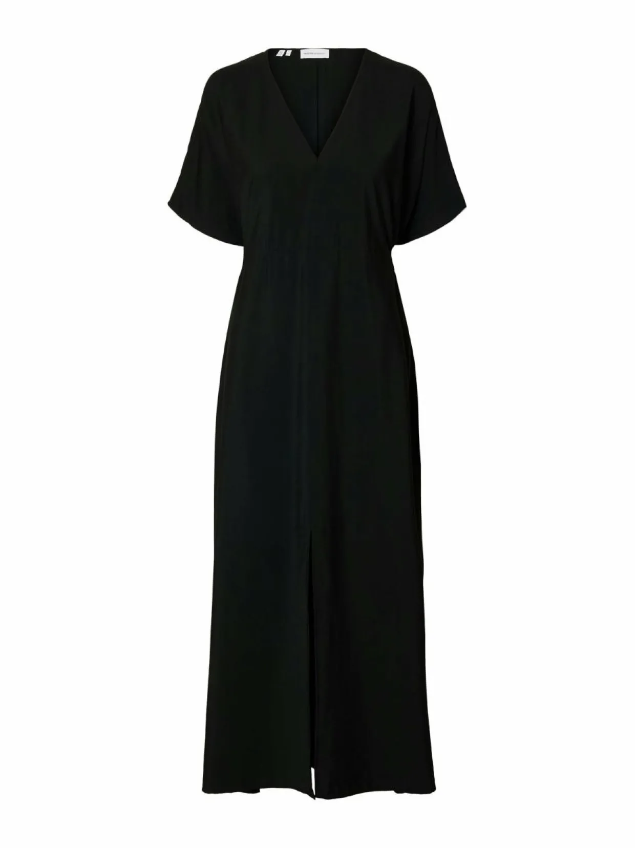 V-kauluksinen nilkkapituinen mekko Selected vaatemerkiltä. Mekko on valmistettu pääosin pehmeästä ja hengittävästä viskoosista. Tuote sisältää vähintään 50 % Lenzing Ecovero -viskoosia. SlfLina-mekossa on mukana vyö. Vaate sopii hyvin niin arkeen kuin juhlaan.