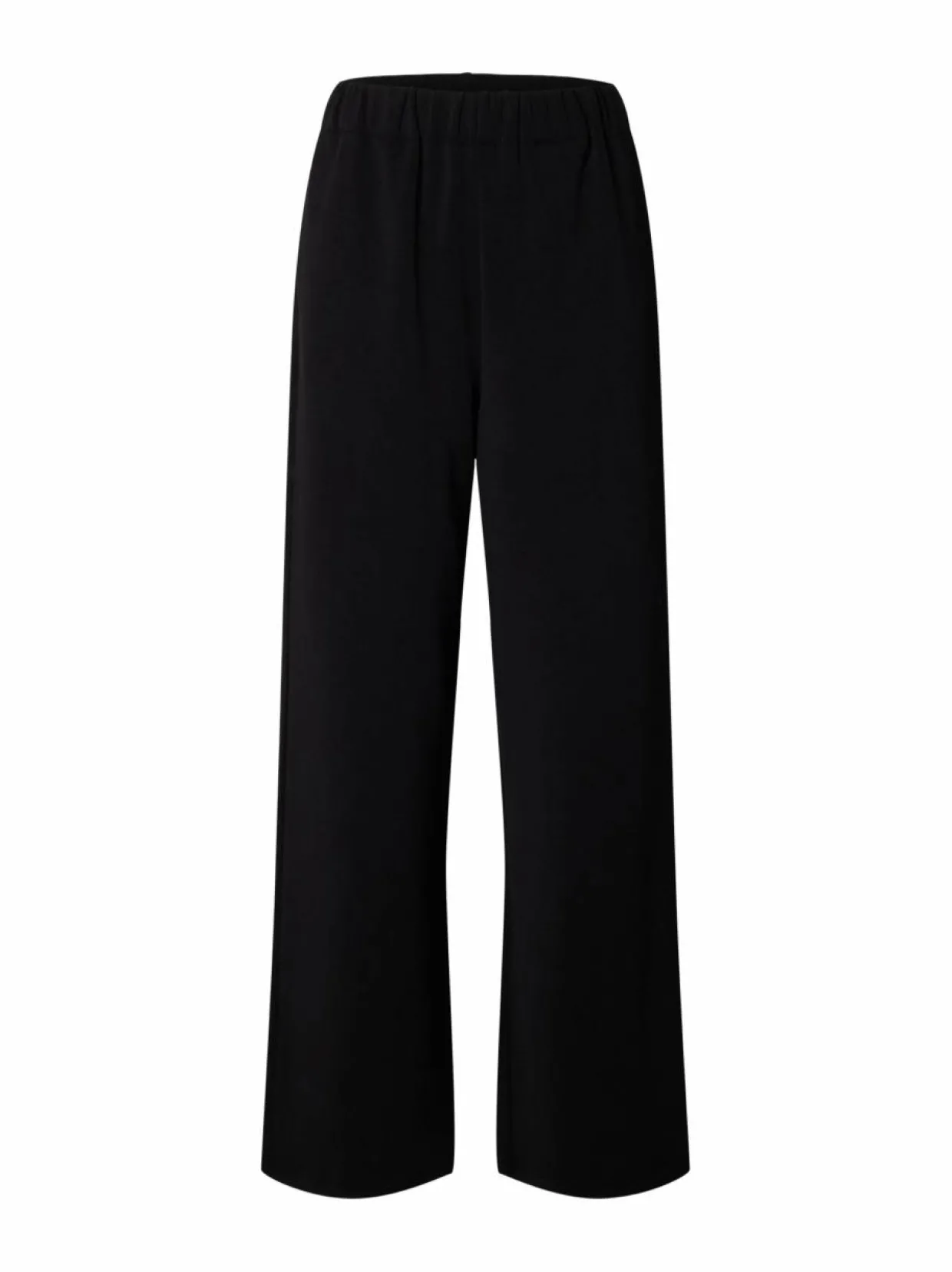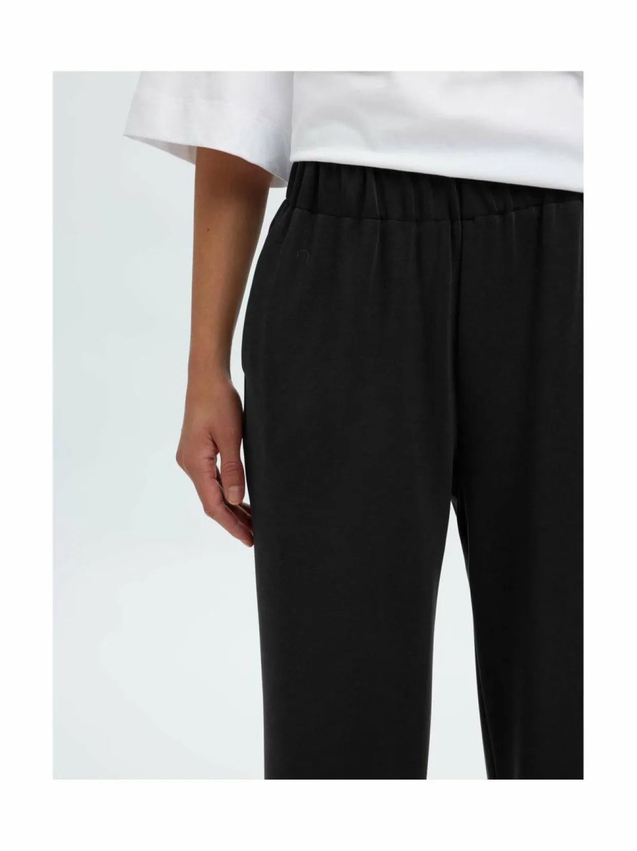 Materiaali51 % modaali, 45 % polyesteri, 4 % elastaani Hoito-ohjeetHienopesu 30 asteessa VäriBLACK Avainsanatmodaalihousut, leveälahkeiset housut, väljät housut, mukavat housut, SELECTED