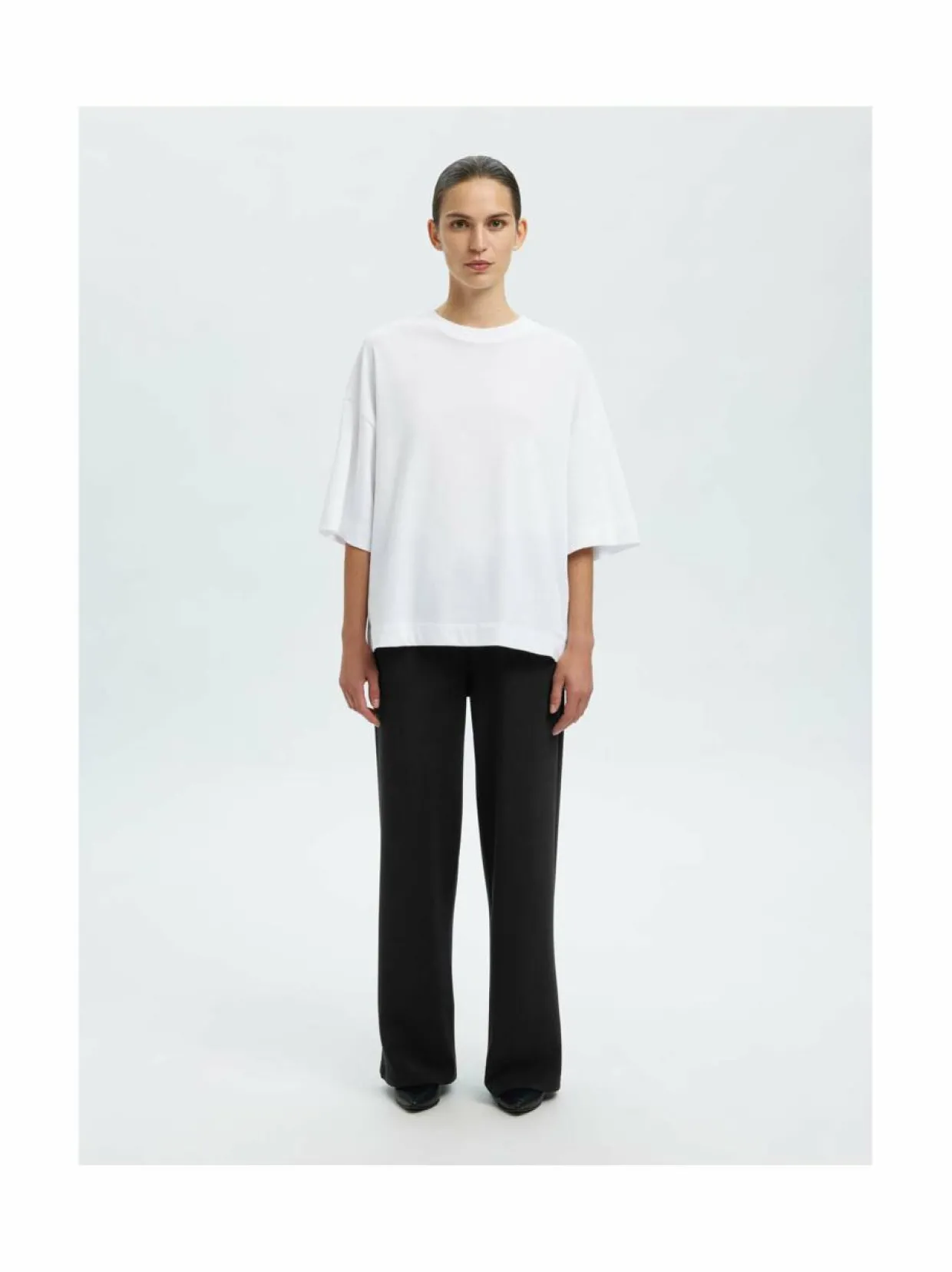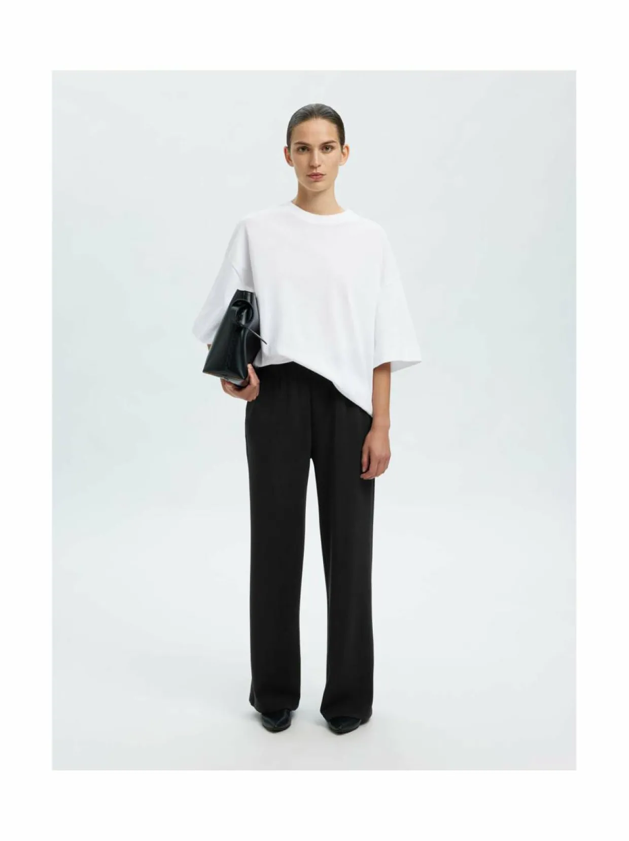 Selected merkkiset taskulliset housut tarjoavat rentoa mukavuutta ja monipuolisuutta. Suoralinjainen muotoilu ja laskeutuva materiaali luovat ilmavan siluetin. Housut sopivat täydellisesti arkeen tai vapaa-aikaan. Tencel-modaalisekoitteinen materiaali on joustavaa laatua, tarjoten pehmeyttä ja hengittävyyttä.