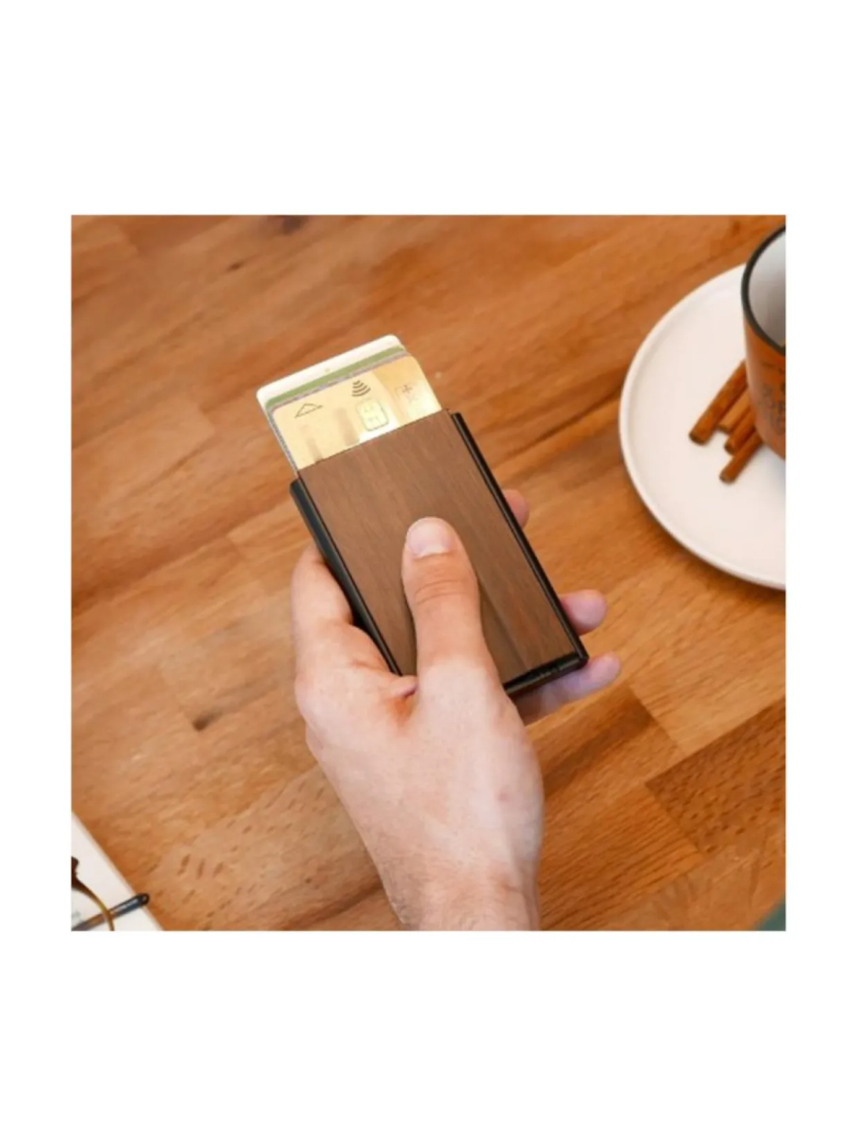 Innovatiivinen avausmekanismi: sinun täytyy työntää vain korttikotelosi etuosaa ja kortit tulevat porrastetusti ulos, avausmekanismin käyttö onnistuu yhdellä kädellä!