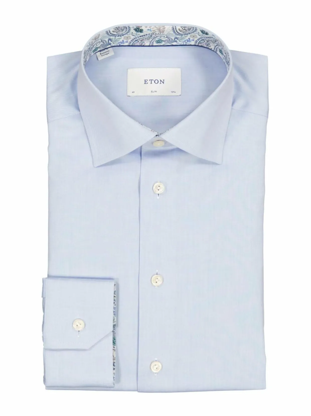 Miesten klassinen pitkähihainen kauluspaita Eton vaatemerkiltä. Paita on valmistettu miellyttävän tuntuisesta puuvillasta. Se on suunniteltu tyköistuvaan Slim fit -istuvuuteen.