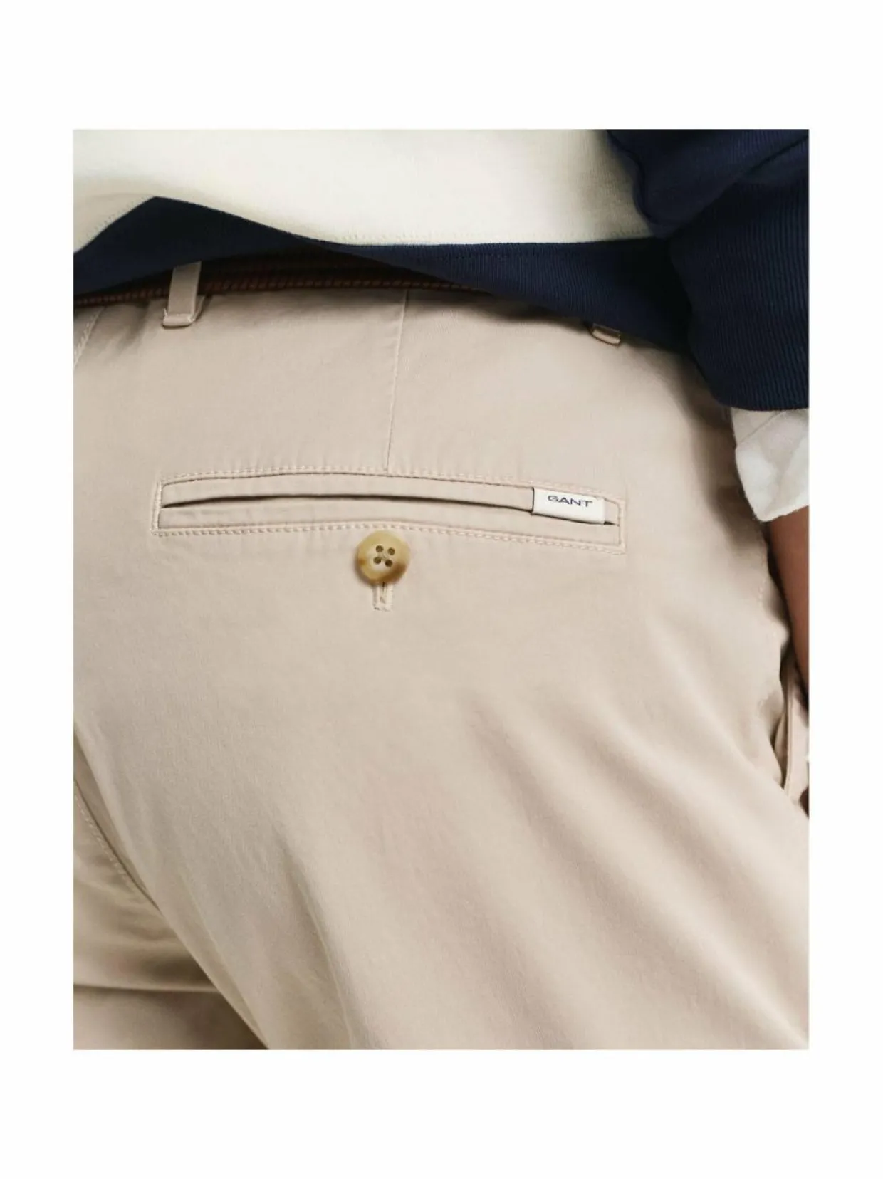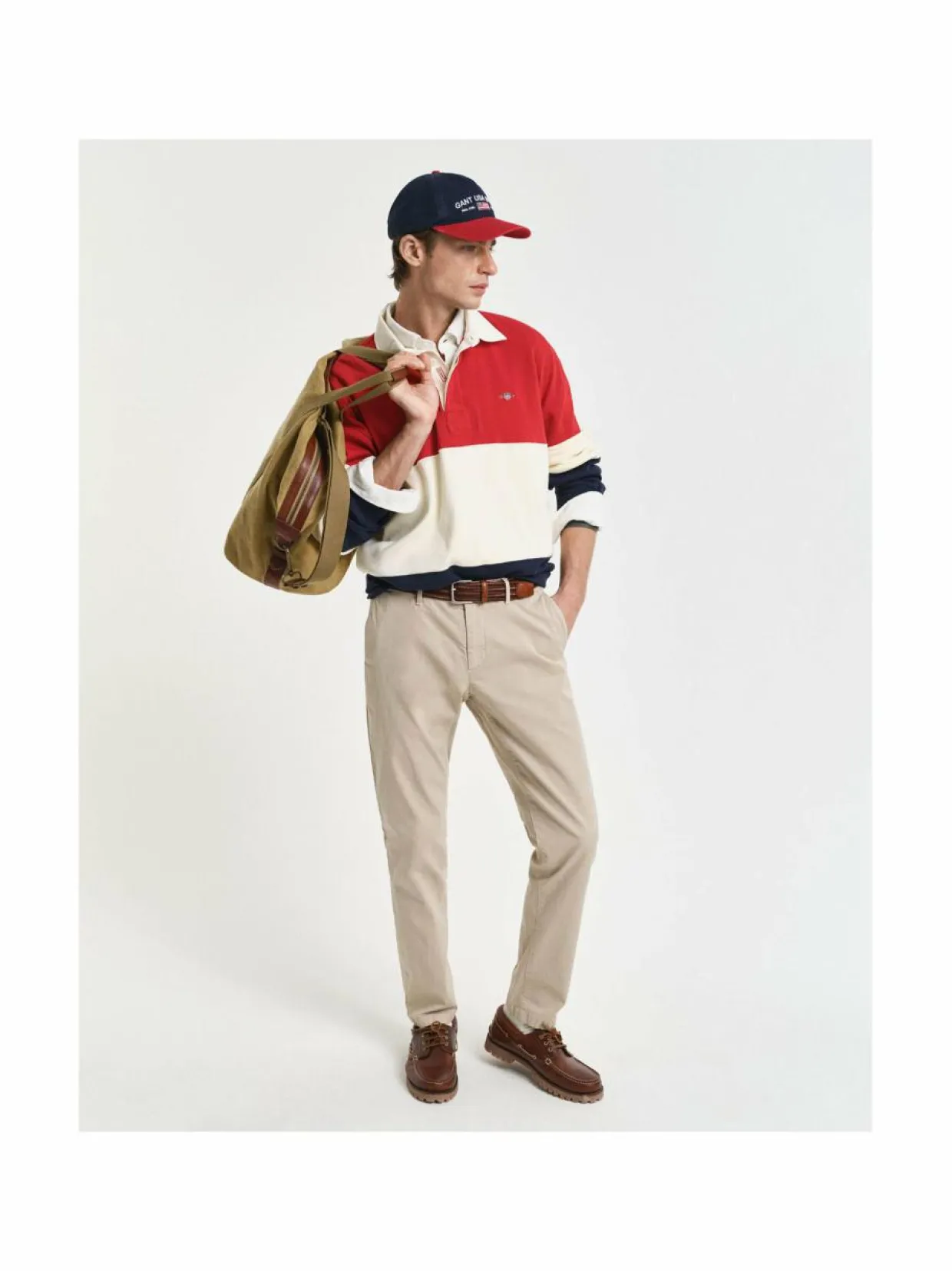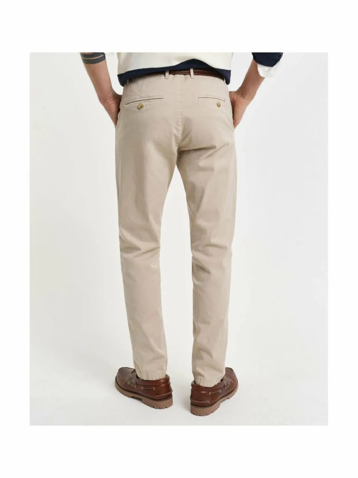 Gantin Slim Sunfaded -chinot on valmistettu joustavasta puuvillasta. Niissä on kapea leikkaus ja kevyesti haalistettu sävy. Muita ominaisuuksia ovat nappi- ja vetoketjukiinnitys, sivutaskut, napilliset takataskut ja vyölenkit. Nämä housut ovat monipuolinen valinta arkeen.