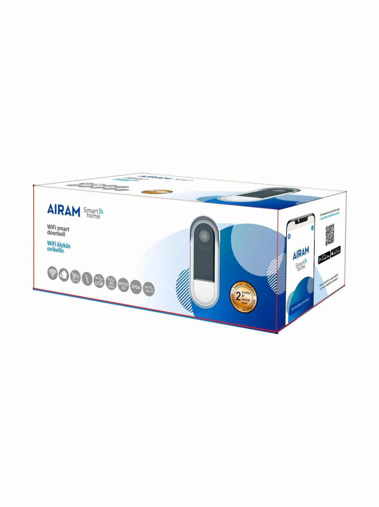 Airamin älyovikello on kätevä ja helppokäyttöinen laite, joka tuo turvallisuutta kotiin. Airam SmartHome -sovelluksen avulla voit nähdä, kuka on ovella, puhua vierailijan kanssa ja jopa avata oven etänä. Yötila ja sähköinen lukko ehkäisevät ovikellon varastamista. SmartHome-sovelluksessa on mahdollista yhdistää ovikello saman tuotesarjan ovihälyttimeen.