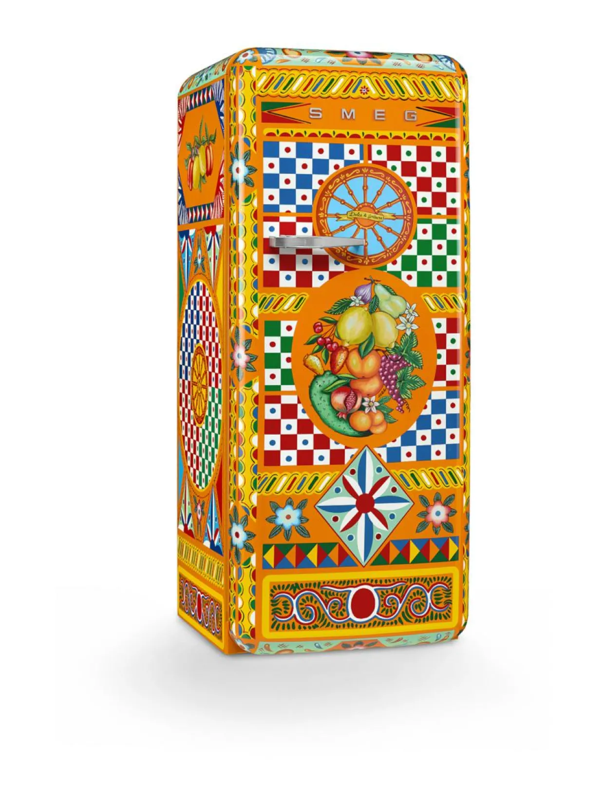 Ainutlaatuinen Smeg Dolce & Gabbana Divina Cucina FAB28RDGC5 jääkaappi tuo upeat värit keittiöösi.