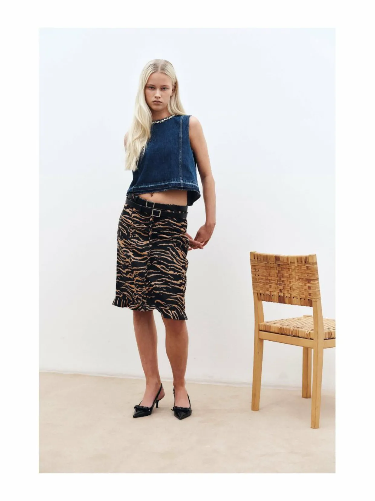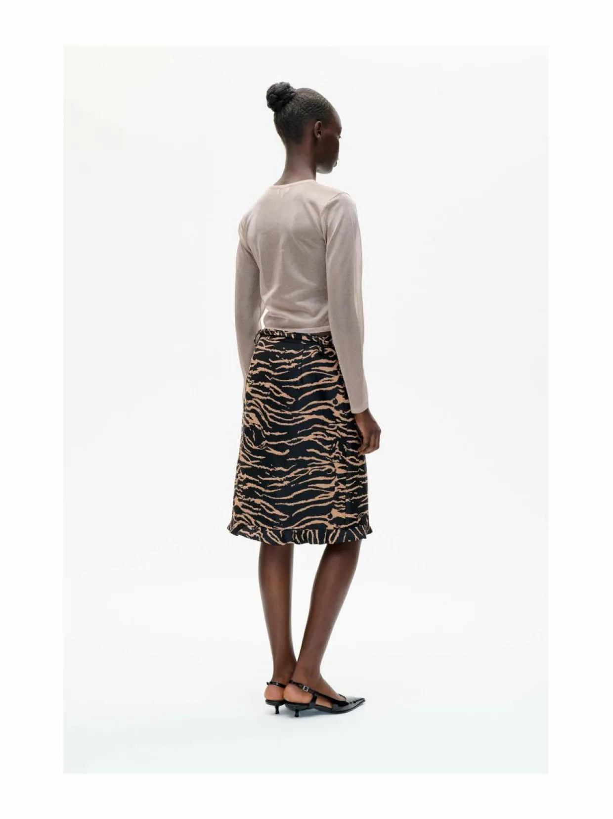 Baum und Pferdgarten merkkinen Smilla-hame on suunniteltu luomaan vaivattoman ja huolitellun ilmeen. Hameen siluetti on suunniteltu korostamaan vartaloa, ja sen leikkaus antaa sille ajatonta eleganssia. Materiaali tuntuu miellyttävältä iholla ja laskeutuu kauniisti, mikä tekee siitä täydellisen valinnan niin arkeen kuin juhlaan. Hameen monikäyttöisyys tekee siitä helposti yhdisteltävän eri yläosien kanssa, luoden aina uusia ja persoonallisia kokonaisuuksia.