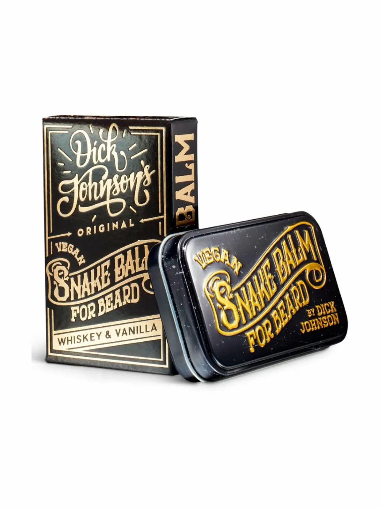 Dick Johnsonin täysin vegaaninen partavaha. Mehiläisvaha on korvattu kandelillavahalla, joka on luonnollinen kasvipohjainen vaha. Kandelillavaha on rakenteeltaan tiheämpää kuin mehiläisvaha, joten se on omiaan käytettäväksi partavahassa, jolta halutaan pitoa ja kammattavuutta. Snake Balm -partavaha on myös erittäin ihoystävällinen, se ei tahmaa ja sitoutuu toisiin öljyihin loistavasti. Mukaan on lorautettu sopivasti Dick Johnsonin Singnature Scent -tuoksua ”Whiskey & Vanilla”, joten tuote sopii mainiosti käytettäväksi Snake Oilin kanssa.