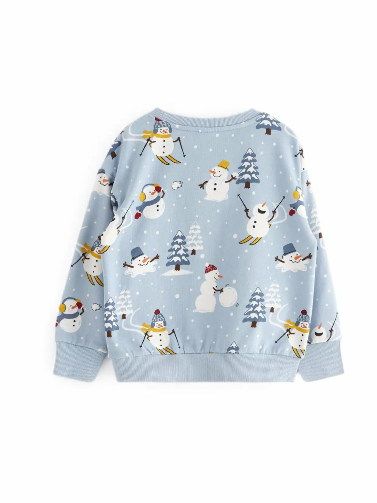 Mukava lasten collegepaita, jossa on lumiukkokuvio ja lämmin, pehmeä harjattu sisäpinta.