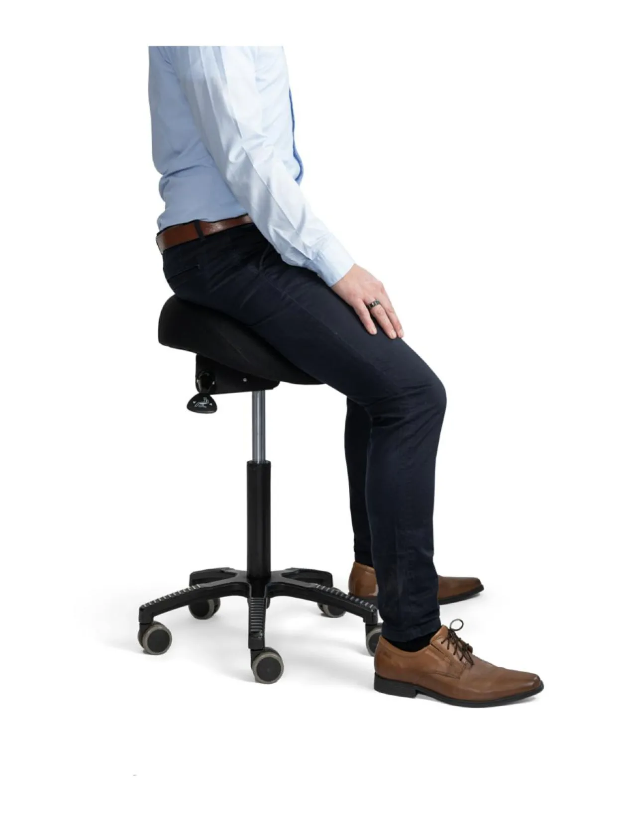 Soft satulatuolissa on thermofoam muotoutuva pehmuste ja kestävä kangasverhoilu. Erittäin hyvä vaihtoehto, kun tarvitset satulatuolin, joka antaa hyvän ryhdin lisäksi myös käyttäjän mukaan muotoutuvan satulaosan. Soveltuu kaikenkokoisille käyttäjille.