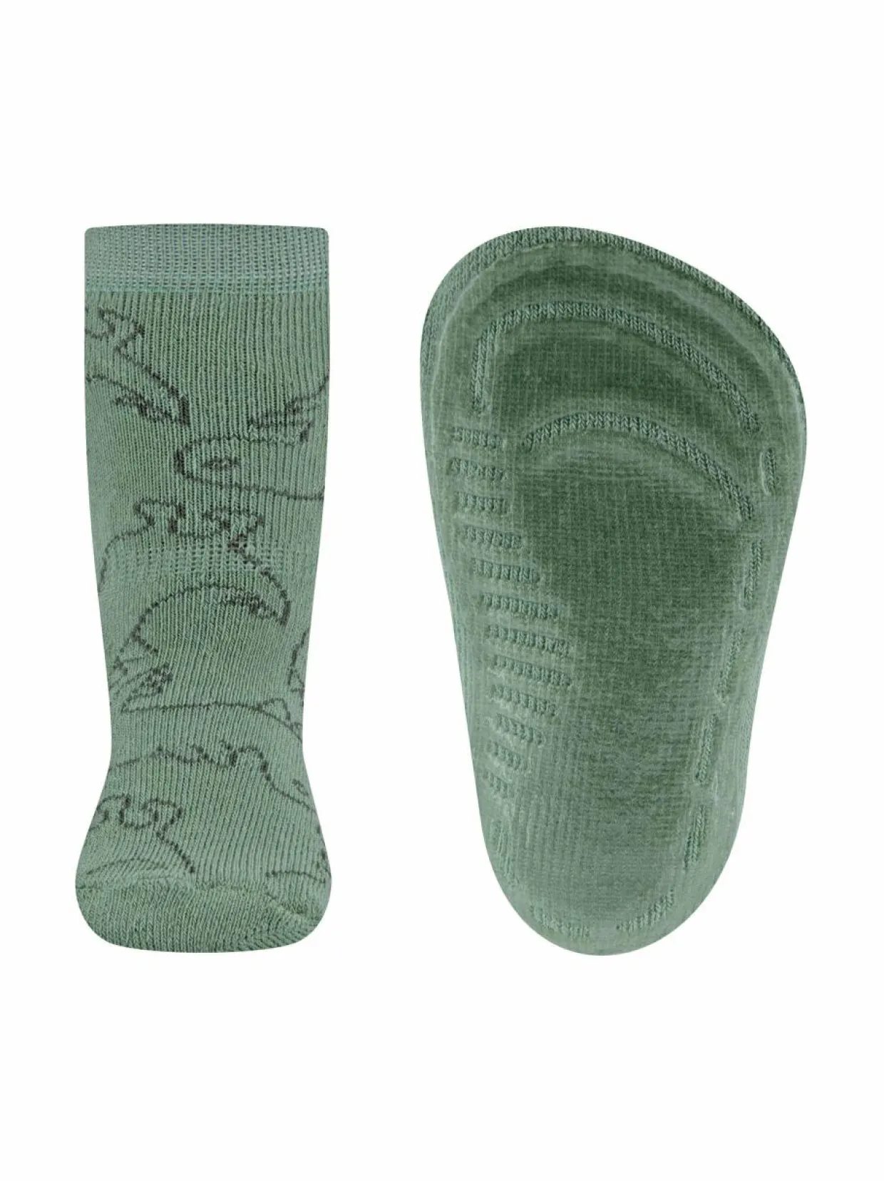 Mukavat lasten sukat dino-kuosissa. Sukkien varresta löytyy kiristämätön resori. Kantapäässä ja kärjessä on vahvikkeet kestävyyden lisäämiseksi. Pehmoinen plyysipohja tarjoaa miellyttävän askeleen.