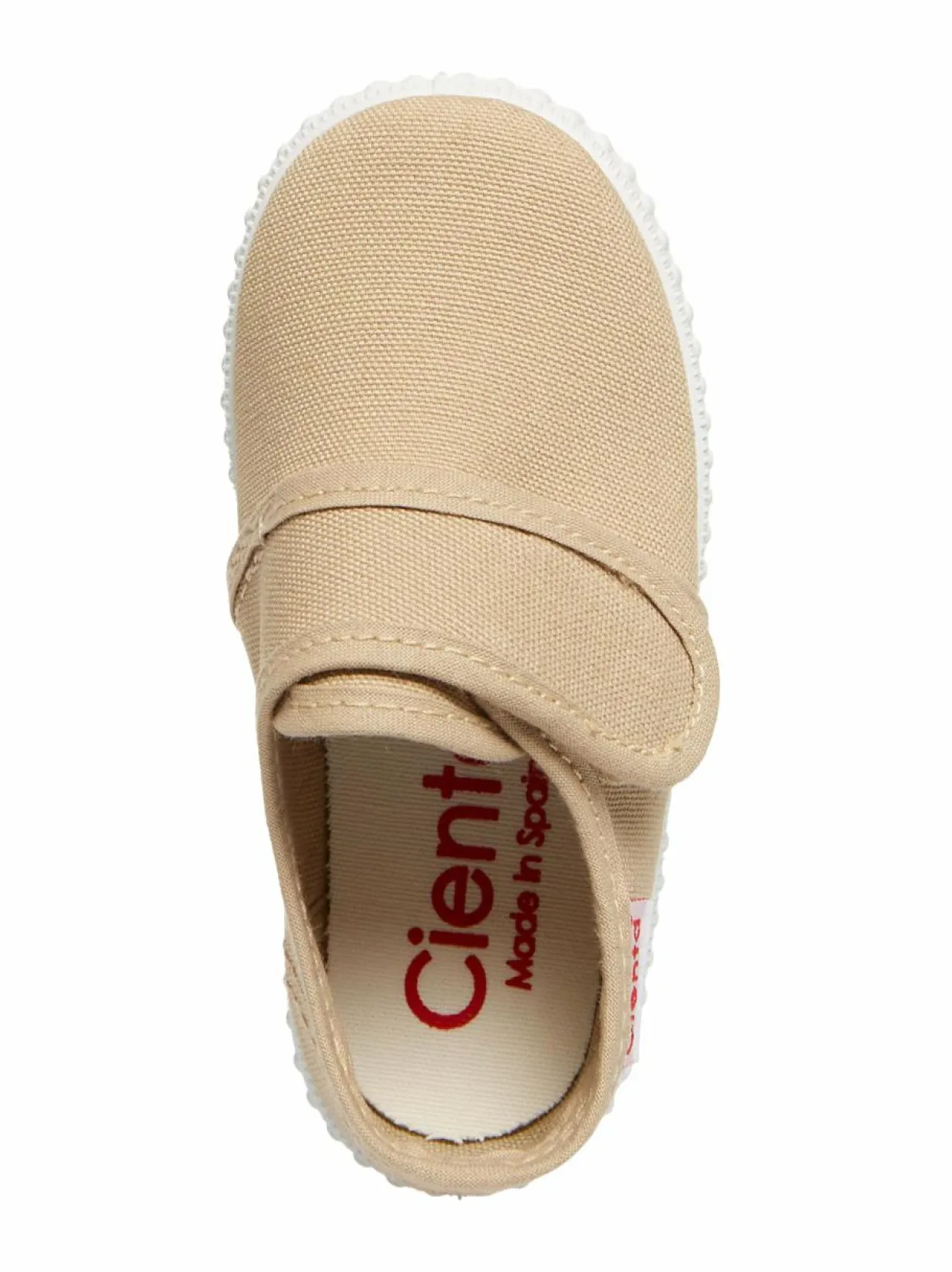 Kesäisissä Cienta-kangaskengissä on pitävä kumipohja. Yksiväriset kengät ovat mukavat jalassa ja helppo pukea, sillä kengissä on kätevä tarrakiinnitys. Pohjamateriaalissa on kevyt tuoksu.