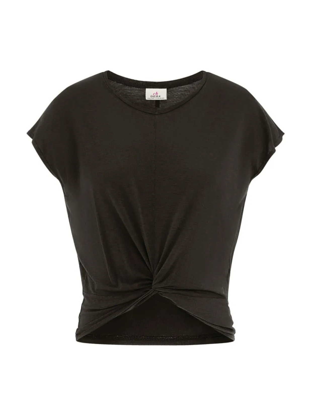 Deha naisten kaunis t-paita solmulla sopii mainiosti urheiluun kuten salille, pilatekseen tai joogaan. Solmu paidan etuosassa korostaa kauniisti vyötäröä ja antaa ilmettä urheilupaidalle. Treenipaita on ihanan pehmeä ja hengittävä ja on valmistettu 100% luonnonystävällisestä viskoosista.