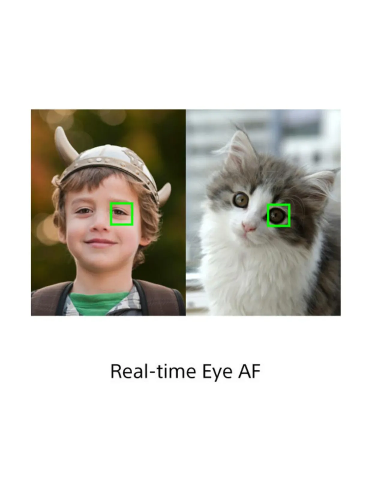 Erittäin nopea reaaliaikainen EyeAF ja kohteen seuranta ihmisillä ja eläimillä, lainattu huippujärjestelmäkamerasta Sony A9