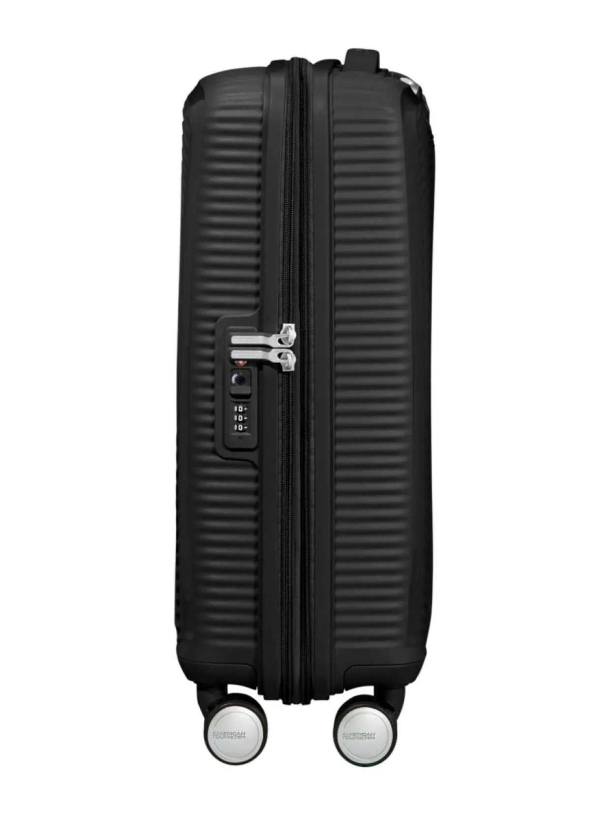 Soundbox lentolaukku on valmistettu kestävästä polypropeenimateriaalista ja se tarjoaa maksimaalisen tilavuuden tilavalla sisätilalla sekä kätevän laajennusosan. Joustavat ristikkäiset kuminauhat sekä väriin sopiva vetoketjullinen tilanjakaja taskulla helpottavat pakkaamista, ja pitävät tavarasi paikallaan. Matkalaukussa on ikoninen palkittu suunnittelu, joka on saanut inspiraationsa vinyylilevyistä. Hiljaisesti rullaavat tuplarenkaat tuovat mukavuutta ja helppokäyttöisyyttä sekä kiinteä 3-numeroinen TSA-lukko pitää tavarasi turvassa matkalla.