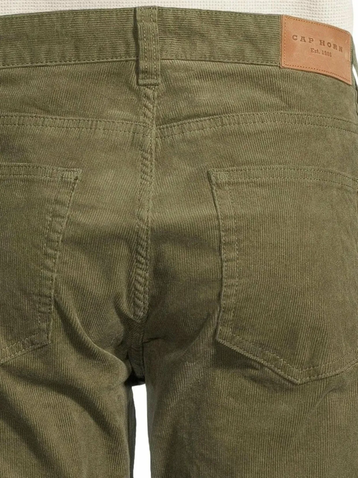 Klassiset viisitaskuhousut, joissa on pehmeä ja kestävä vakosamettinen kangas. Housut on valmistettu puuvillasta, joka tarjoaa hengittävyyttä ja mukavuutta. Elastaanin ansiosta housut joustavat hieman, mikä lisää niille käyttömukavuutta. Cap Horn merkkiset Spencer-vakosamettihousut sopivat monipuolisesti niin arkeen kuin juhlaan.