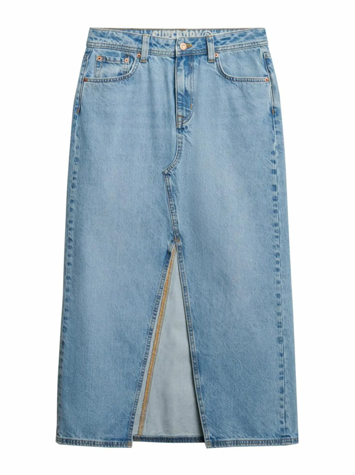 Superdryn Split Maxi -farkkuhame on valmistettu 100 % luomupuuvillasta. Hameessa on korkea vyötärö ja halkio. Hame on kestävä ja sitä on mukava käyttää. Hame on täydellinen arkikäyttöön ja se sopii yhteen monenlaisten yläosien kanssa.