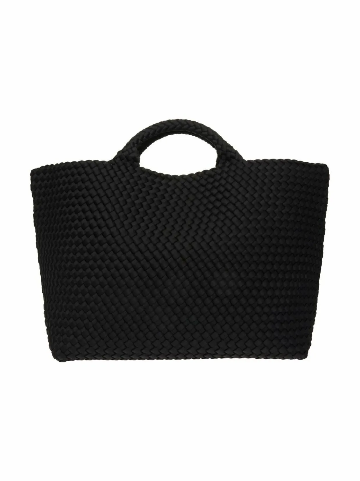 Naghedi-merkin käsinkudottu St Barths Large Tote -laukku on kevyt ja monipuolinen klassikkolaukku, joka on ihanteellinen arkeen tai vaikka viikonlopun matkalle. Laukussa on kaksi kantokahvaa, jotka joustavat hieman ja mukautuvat pehmeästi olkapäälle. Laukun mukana tulee pieni vetoketjullinen pussi, johon voi laittaa pienet tavarat. Tämä laukku on tehty käsityönä ja tästä syystä pienet sävyerot ovat mahdollisia.