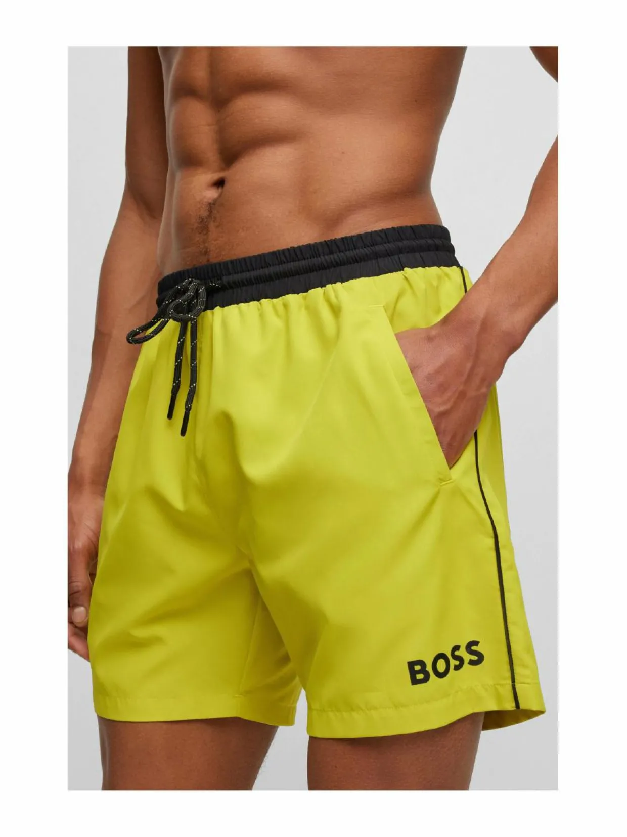 Modernit taskulliset uimashortsit joustavalla ja säädettävällä vyötäröllä. Valmistettu nopeasti kuivuvasta materiaalista.