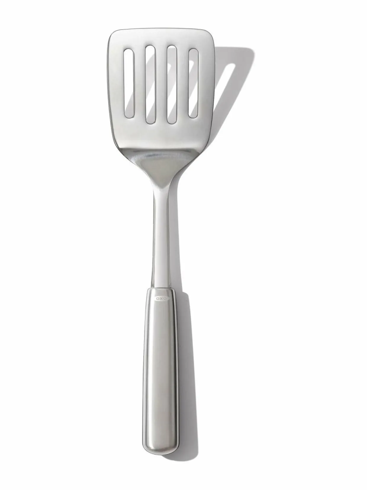 OXO Steel Cooking -teräslastalla voit murentaa jauhelihaa, nostaa pihvejä ja kääntää kananmunia pannulla sujuvasti. Valmistettu ruostumattomasta teräksestä.