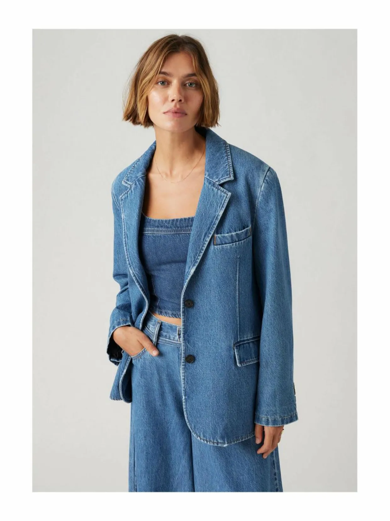 Levi’s Stella Relaxed -farkkubleiseri on rento ja tyylikäs lisäys vaatekaappiisi. Se on valmistettu 100 % puuvillasta ja siinä on kaksi etutaskua, kaksi sisätaskua sekä napit edessä. Bleiserissä on klassinen leikkaus. Se on mukava ja helppo pukea päälle ja se sopii yhteen monenlaisten vaatteiden kanssa – sekä arkisten että juhlavien. Bleiseri on kestävä ja pitkäikäinen.