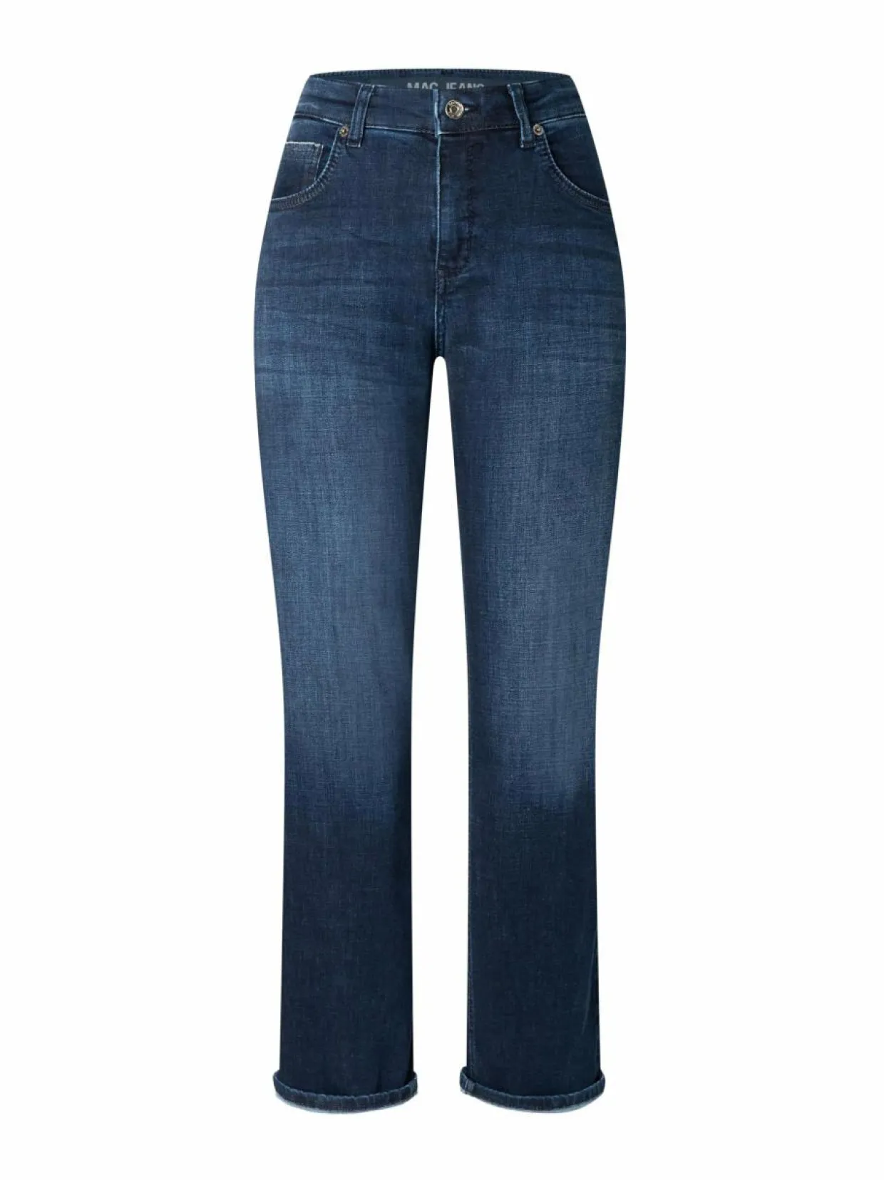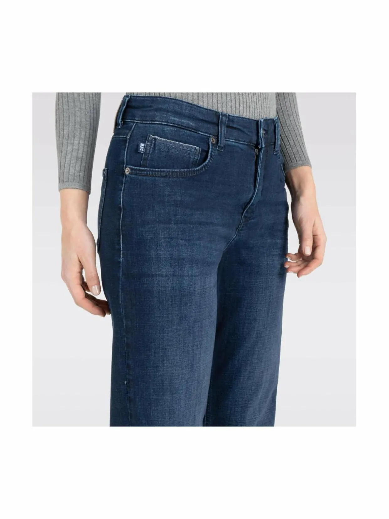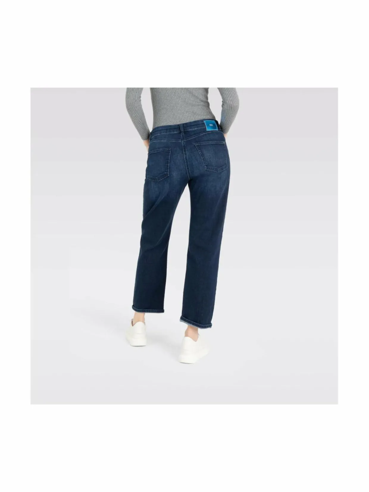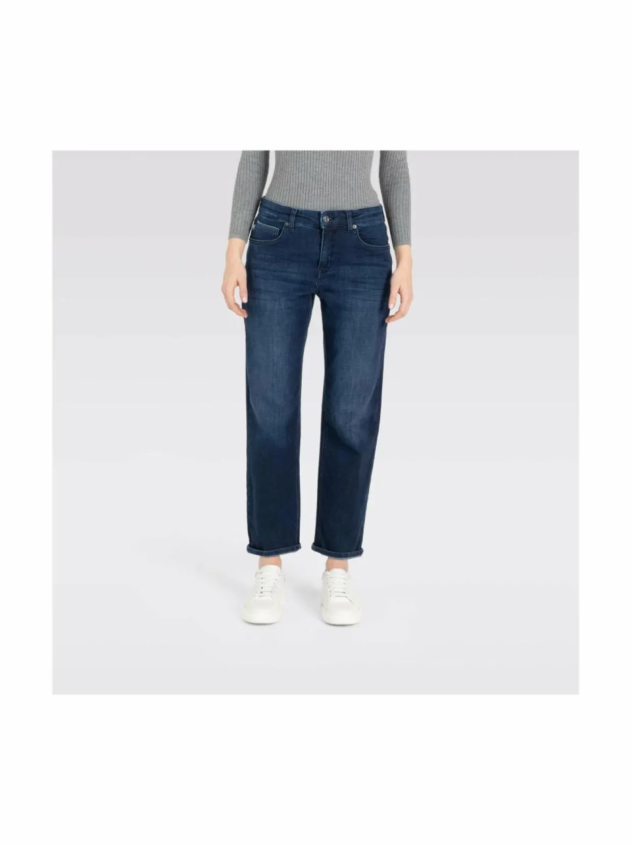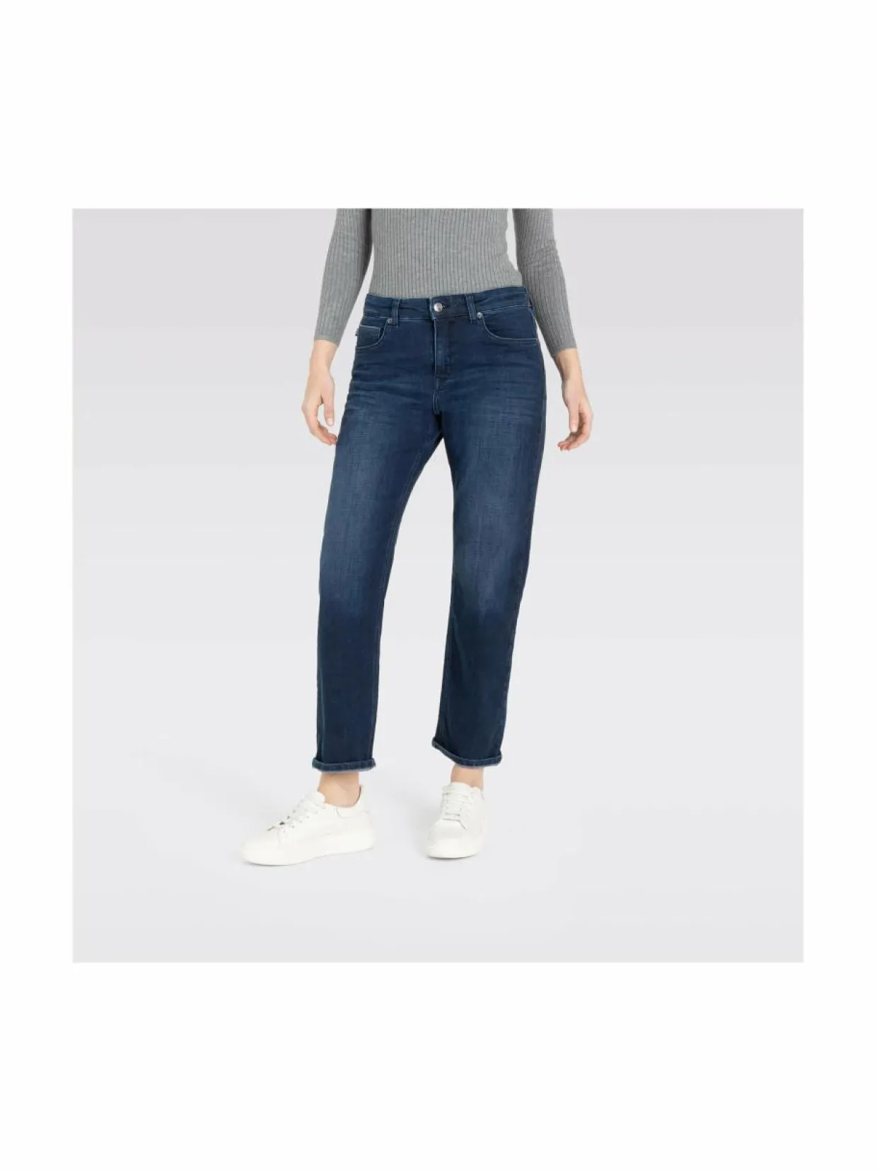 Kevyestä, pehmeän tuntuisesta ja joustavasta puuvillasekoitteesta valmistetut suoralahkeiset farkut. Yksityiskohtana käännetyt lahkeensuut, keskikorkea vyötärölinja ja hopeansävyiset niitit. Vyötärökaitaleelta löytyvät myös vyölenkit. Tyylin viimeistelee hieno kulutusefekti.
