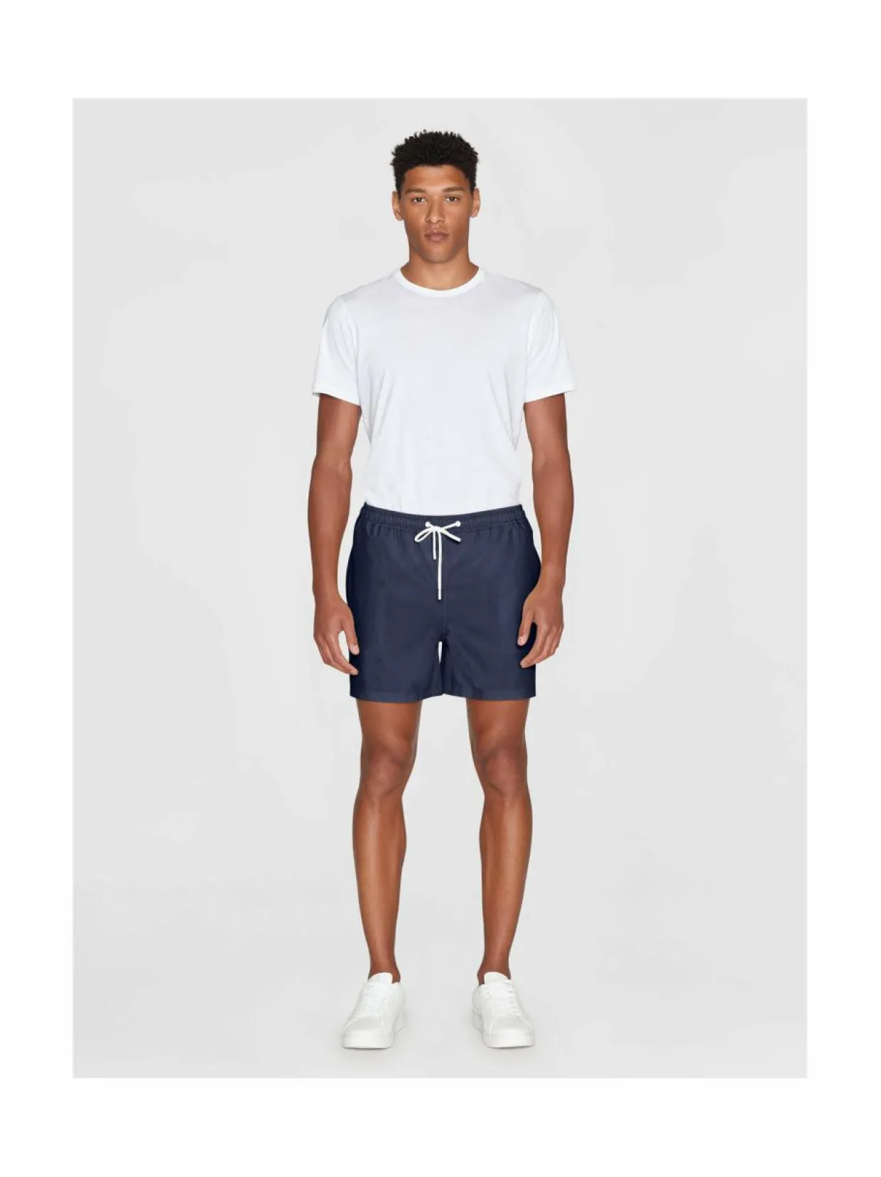 Knowledge Cotton Apparelin Stretch-uimashortseissa on mukavuutta lisäävät verkkosisähousut, joustava vyötärö ja kiristysnyörit. Uimahousuissa on kaksi sivutaskua ja yksi läpällinen takatasku. Yhtä lahkeensuuta koristaa kiinniommeltu logoetiketti, lisäksi takataskussa on pyöreä logo. Valmistettu nopeasti kuivuvasta kierrätetystä polyesteristä ja elastaanista.