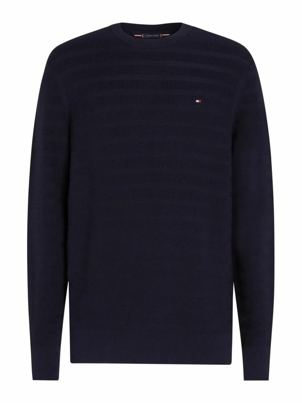 Tommy Hilfigerin Stripe Structure Crew Neck -neulepaitaa koristaa hienostunut, raidallinen struktuuri. Paidassa on pyöreä pääntie ja pitkät hihat. Rintaa koristaa klassinen logobrodeeraus. Valmistettu 100 % puuvillasta.