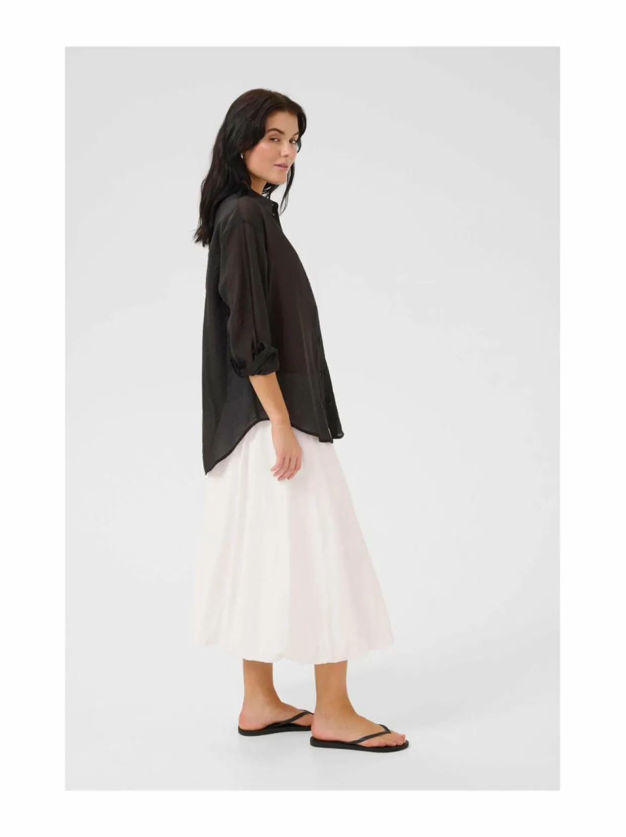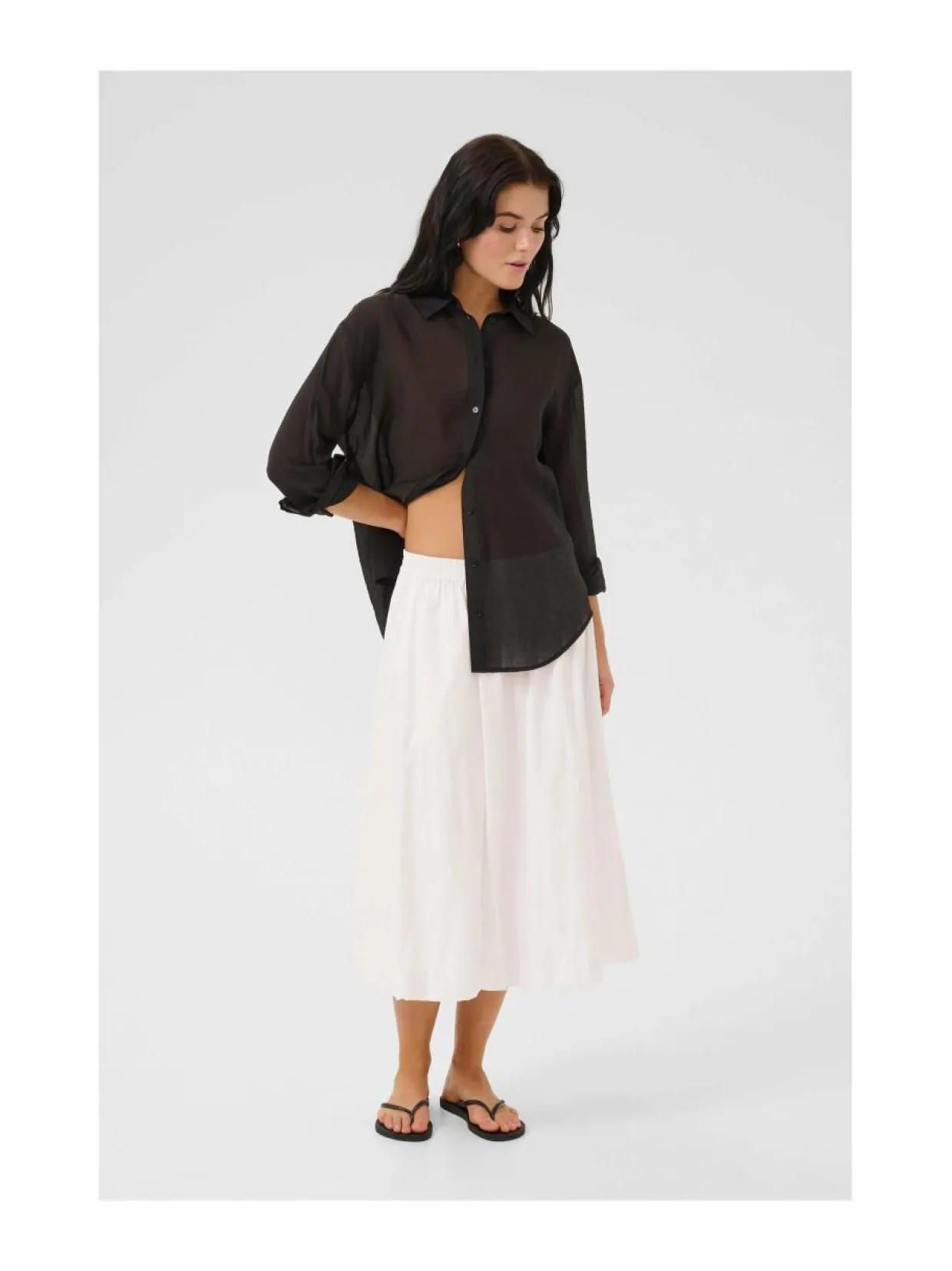 My Essential Wardrobe Sunna -hame huokuu ajatonta eleganssia ja sopii moneen tilaisuuteen. Sen ilmava leikkaus ja kevyt materiaali luovat mukavan tunteen. Hame on täydellinen valinta arkikäyttöön tai iltamenoihin, tarjoten aina sopivan asun. Luomupuuvillainen kangas on pehmeä ja miellyttävä iholla, ja se laskeutuu kauniisti. Tämä vaatekappale on helposti yhdistettävä erilaisiin yläosiin.