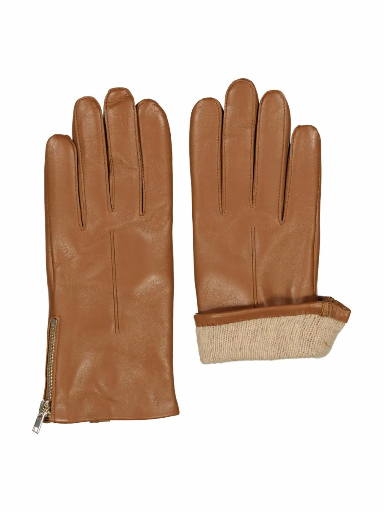 Nämä laadukkaat käsineet on valmistettu pehmeästä nahasta. Käsineissä on lämmin vuori, joka tarjoaa mukavuutta ja lämpöä. Käsineet sopivat täydellisesti viileisiin päiviin ja viimeistelevät asukokonaisuuden. Materiaali on nahkaa, joka on tunnettu kestävyydestään ja ajattomasta ulkonäöstään. Käsineissä on vetoketjut ulkosyrjällä ja koristetikkaukset.