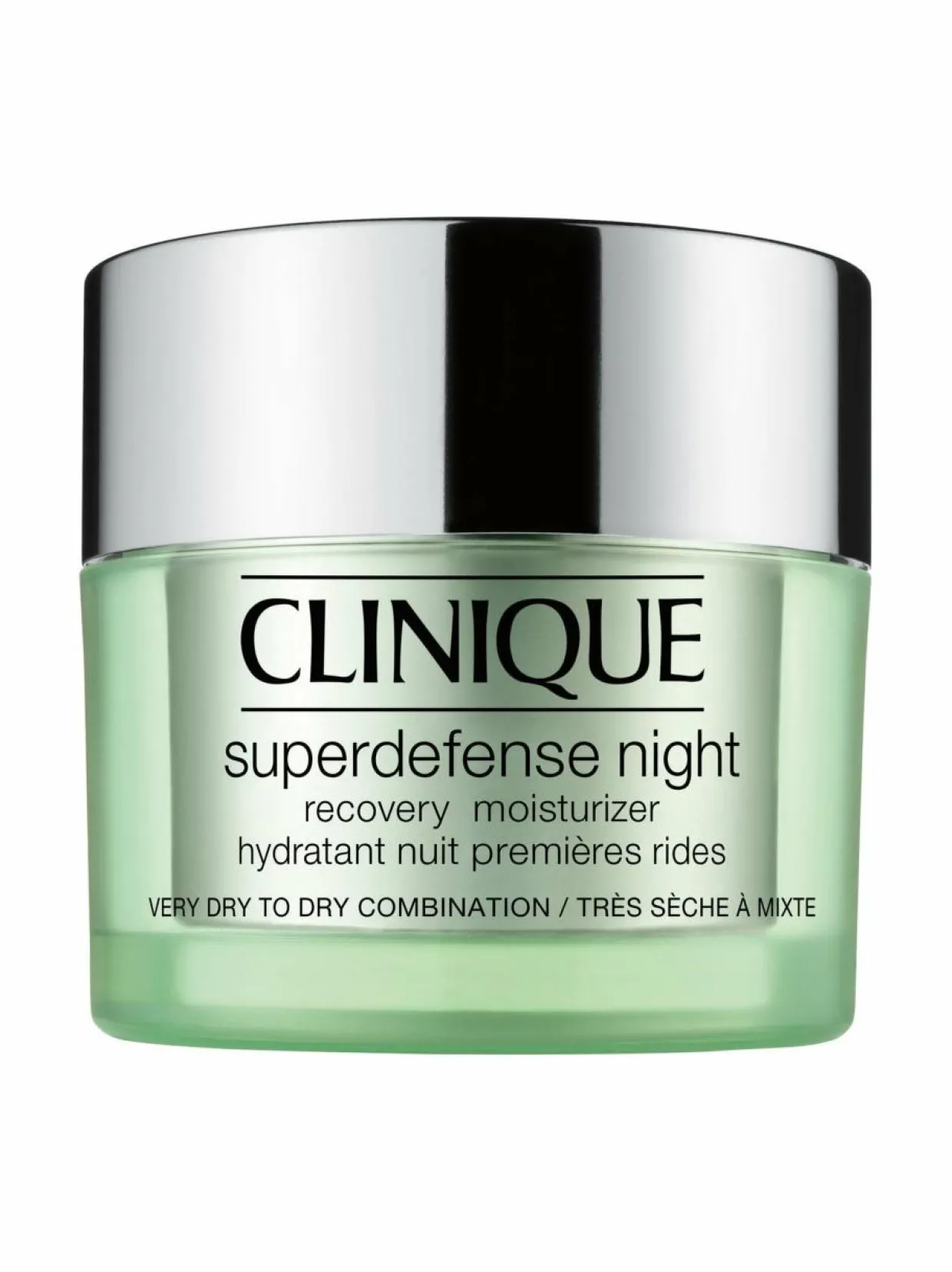 Clinique Superdefense Night Recovery Moisturizer Very Dry To Dry Combination on kosteuttava yövoide, joka auttaa ihoa vastustamaan ensimmäisiä näkyviä ikääntymisen merkkejä. Yövoide stimuloi luonnollista kollageenin ja elastiinin tuotantoa ja tukee optimaalista solujen uusiutumista yöllä samalla kosteuttaen syvältä. Herää raikkaan hehkun kera. Sopii erittäin kuivalle tai kuivalle/sekaiholle.