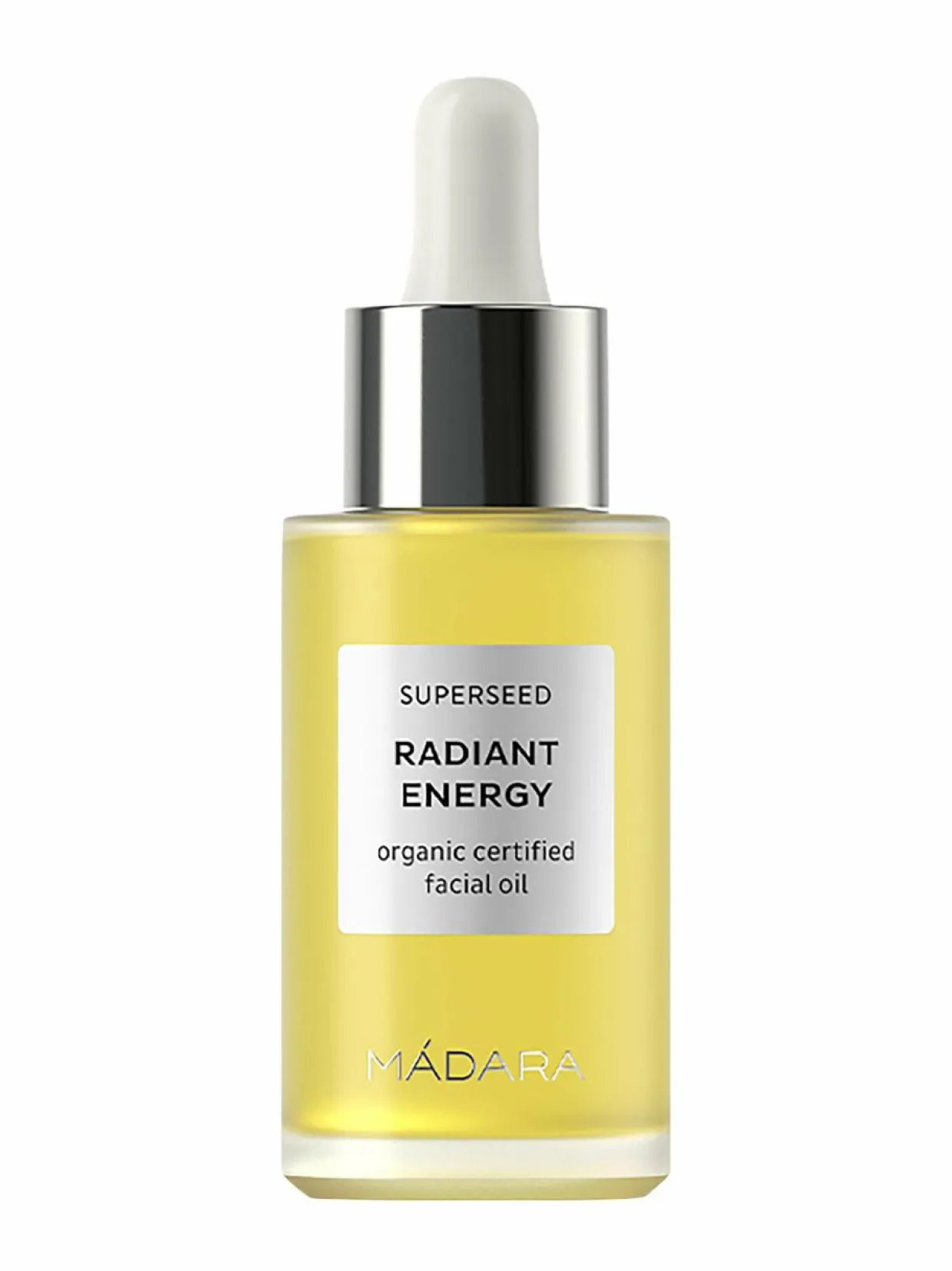 Mádaran Superseed Radiant Energy -kasvoöljy on yhdistelmä yhdeksää arvokasta kuivaöljyä, jotka antavat iholle upean, nuorekkaan kuulauden. Lähes välittömästi ihoon imeytyvä kuivaöljycocktail tehostaa ihon omaa uudistumisprosessia, kosteuttaa sekä auttaa ehkäisemään ulkoisten ärsykkeiden ja stressin aiheuttamia ihovaurioita.