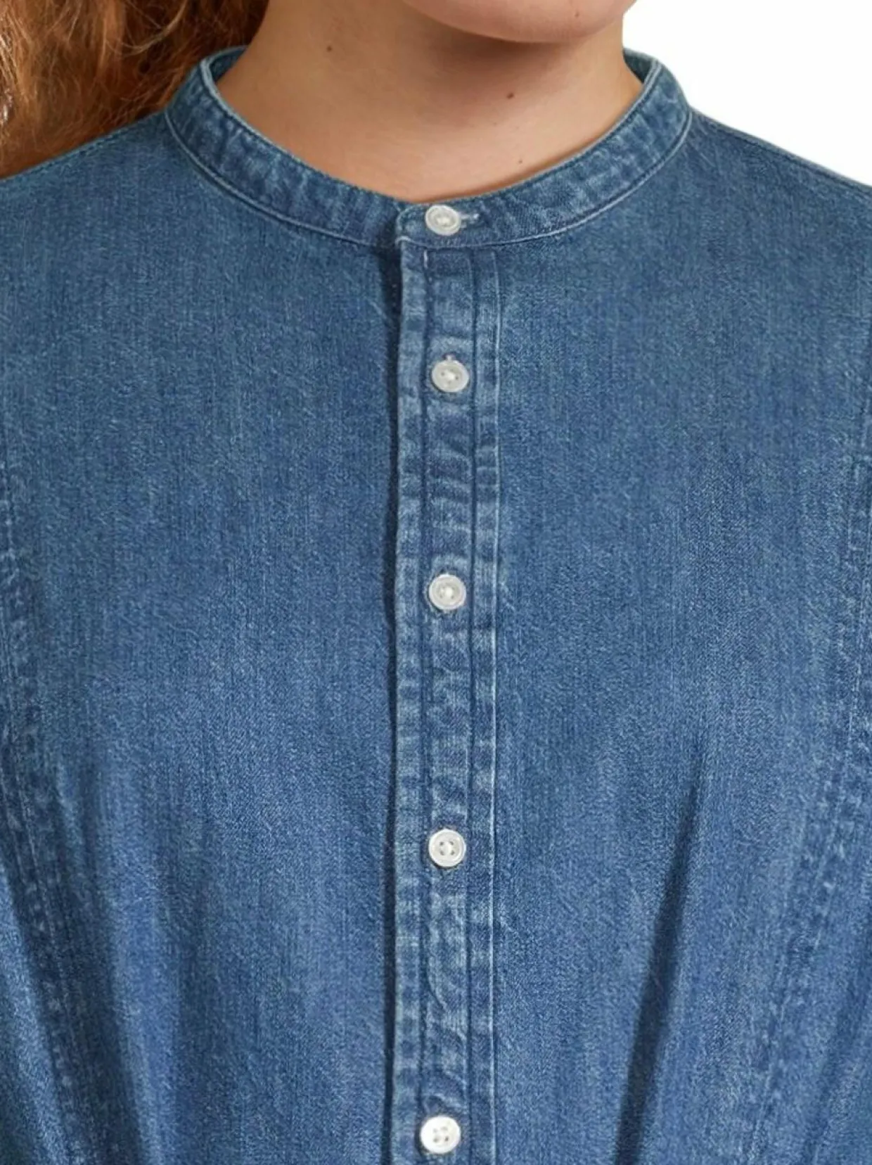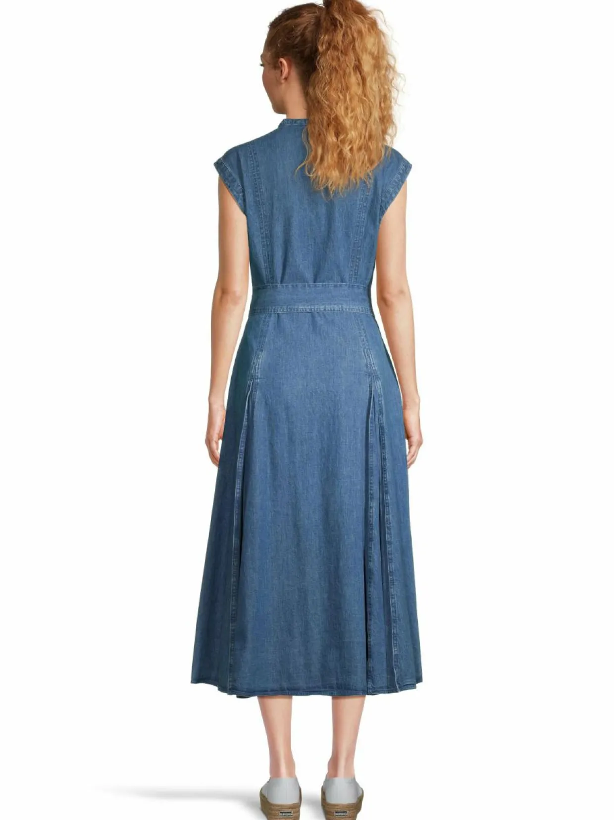 Tyylikäs ja mukava Svan-farkkumekko on valmistettu 100 % puuvillasta. Mekossa on A-linjainen leikkaus ja se on varustettu solmittavalla vyöllä. Mekossa on lyhyet hihat ja napitus. Se sopii täydellisesti arkeen. Se on helppo yhdistää erilaisiin asusteisiin.