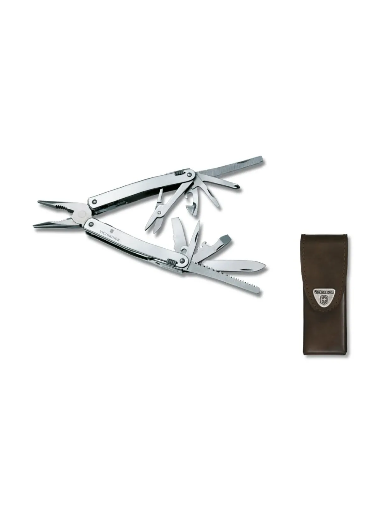 Järeä monitoimityökalu ammattimaiseen käyttöön. SwissTooli Spirit X:n terät ovat lukittuvia ja siksi sen käyttö on turvallista. Kaikki terät aukeavat suoraan sivuilta ilman että pihtejä tarvitsee avata. Alkuperäinen SwissTool Spirit X on SwissToolia kevyempi ja pienempi malli, mutta samoilla vahvoilla ominaisuuksilla ja laadulla. Muotoillut kahvat antavat erinomaisen otteen työkalusta. Työkalun mukana tulee nahkakotelo. Pituus suljettuna 106 mm.