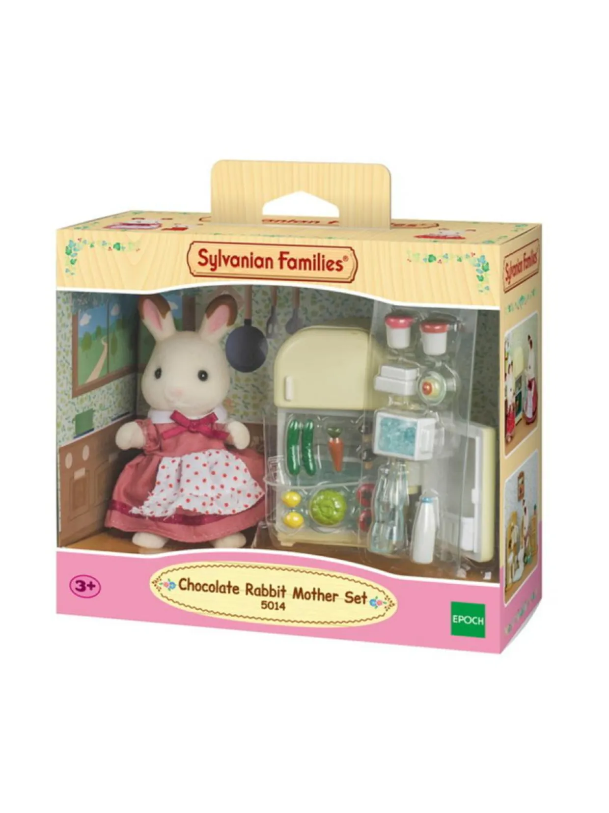 Tämä Suklaapupuäiti ja jääkaappi -setti on juuri se, mitä tarvitset lisätäksesi tyyliä Sylvanian Families -talon keittiöön. Äidin ja jääkaapin lisäksi pakkaukseen kuuluu paljon lisätarvikkeita.