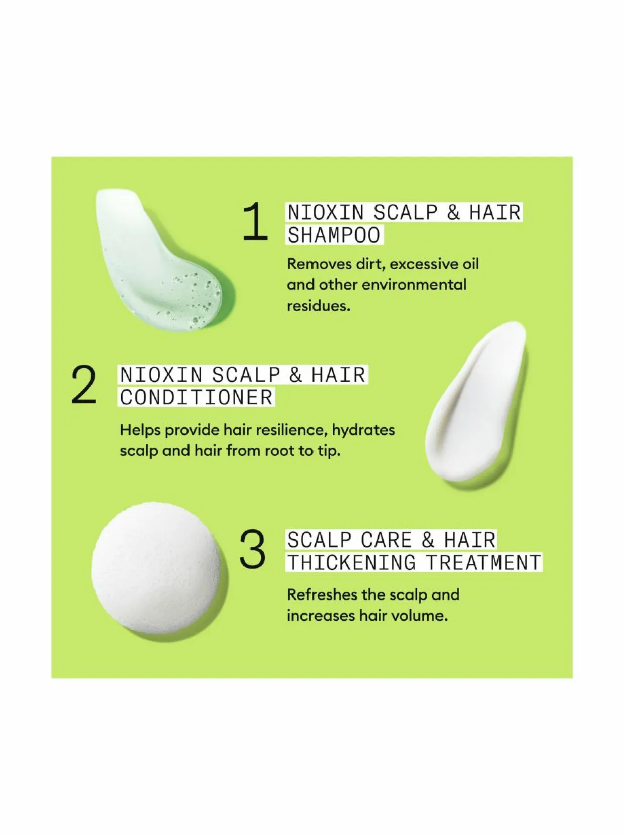 - Nioxin Scalp & Hair Treatment raikastaa hiuspohjaa ja auttaa tekemään hiuksista tuuheammat lisäämällä jokaisen hiuksen paksuutta. Pakkauksen on kliinisesti osoitettu vähentävän katkeilun aiheuttamaa hiustenlähtöä jopa 91 %**.