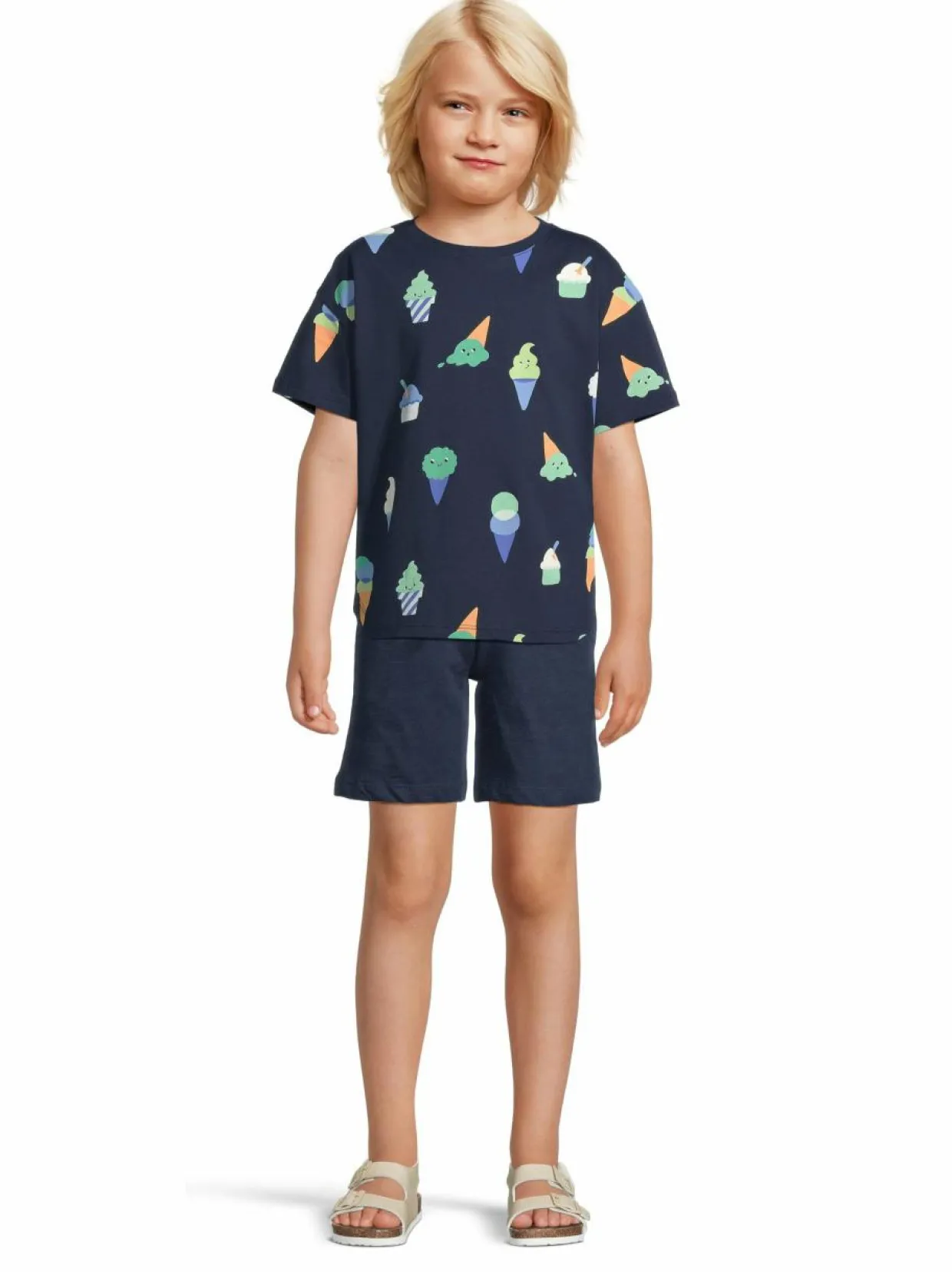 Kuviollinen t-paita pehmeää puuvillaa. Paidassa on rento istuvuus, pyöreä pääntie ja pyöristetty helma. Sisältää 80 % luomupuuvillaa ja 20 % kierrätettyä puuvillaa.