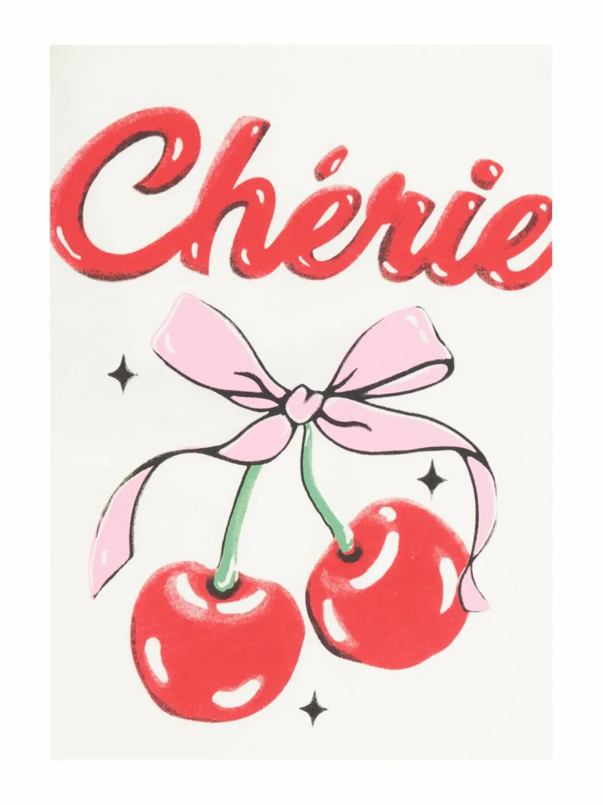 T-paita pehmeästä puuvillatrikoosta, jossa on lyhyet hihat ja suuri kirsikkapainatus edessä. Paidassa on resoroitu pyöreä pääntie. Sisältää 80 % luomupuuvillaa ja 20 % kierrätettyä puuvillaa.