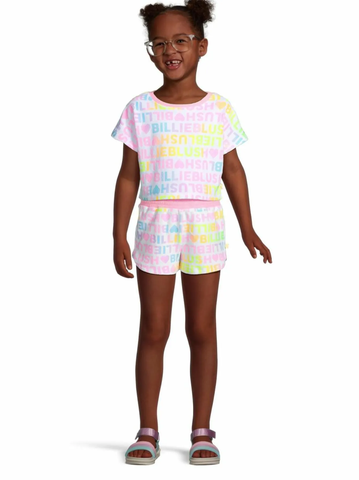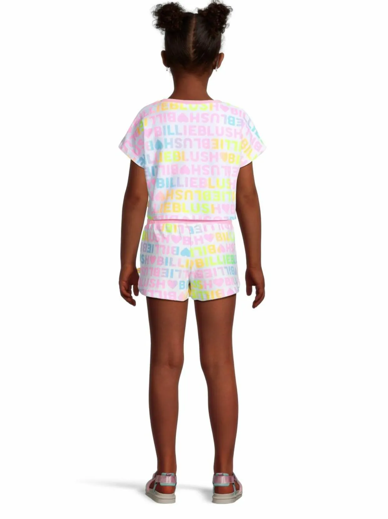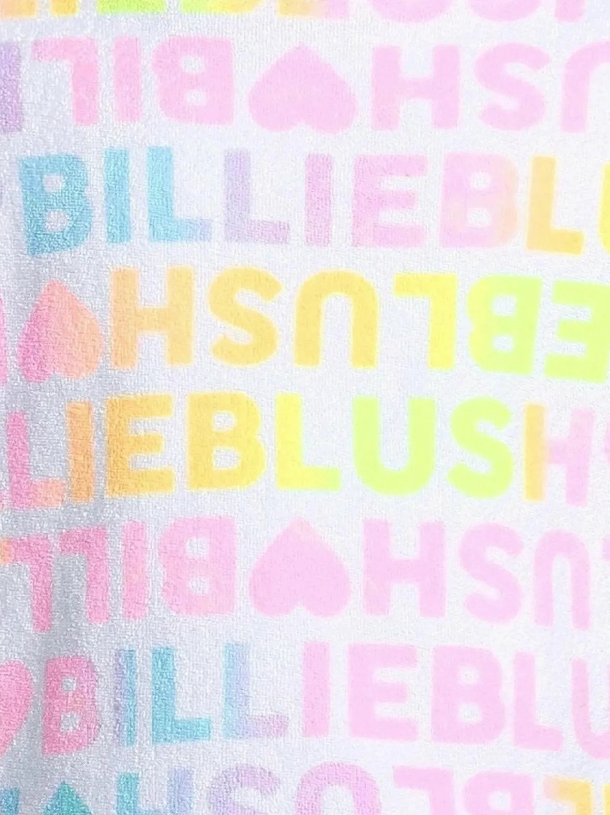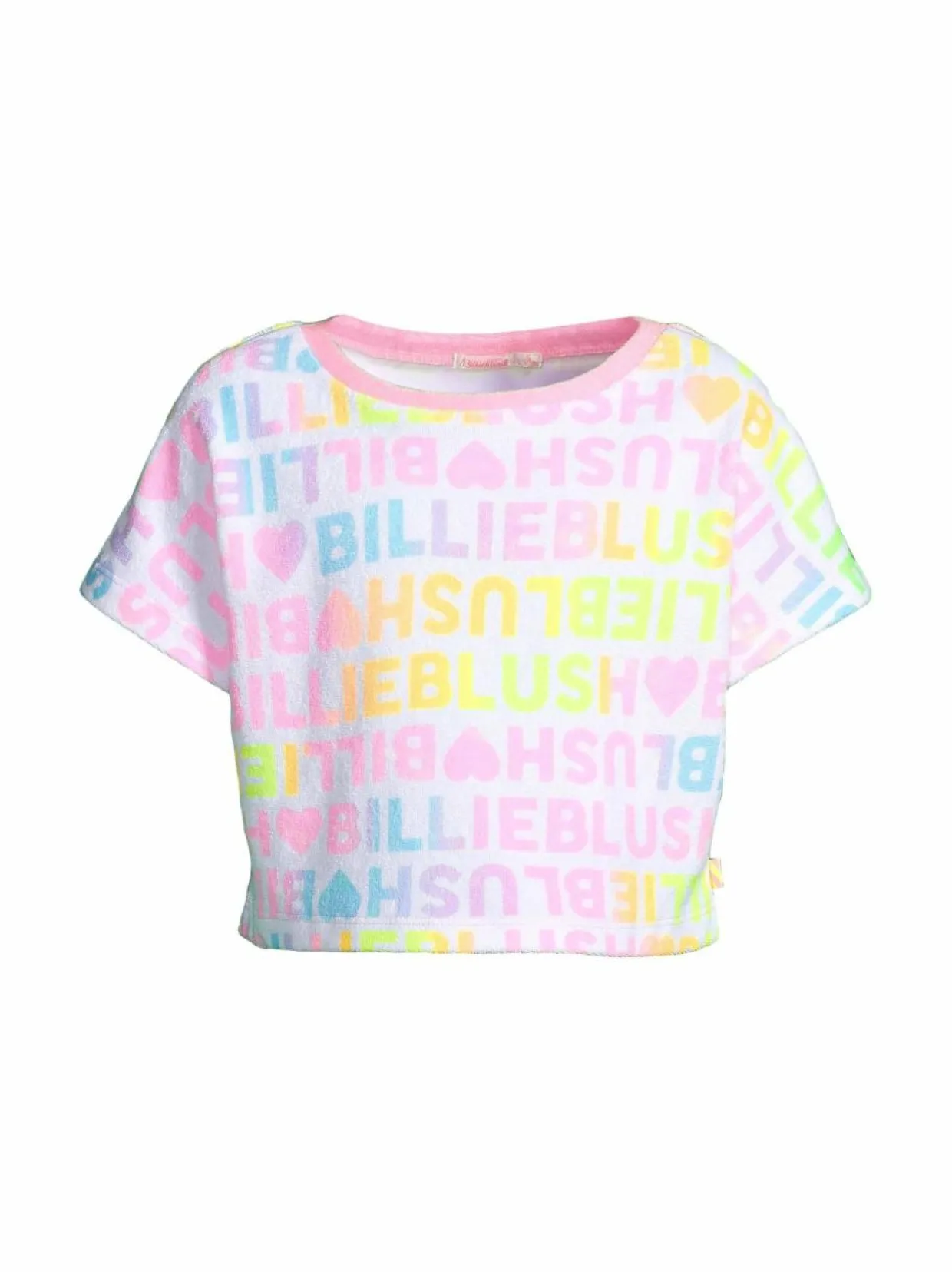 Suloinen ja pehmeä Billieblushin froteekankaasta valmistettu t-paita tuo iloa jokaiseen päivään. Tämä lyhennetty t-paita on koristeltu värikkäillä ”Billieblush”-teksteillä ja pienillä sydämillä, luoden leikkisän ilmeen. Paidassa on resoroitu pyöreä pääntie. Rennon väljä malli takaavat mukavan istuvuuden.