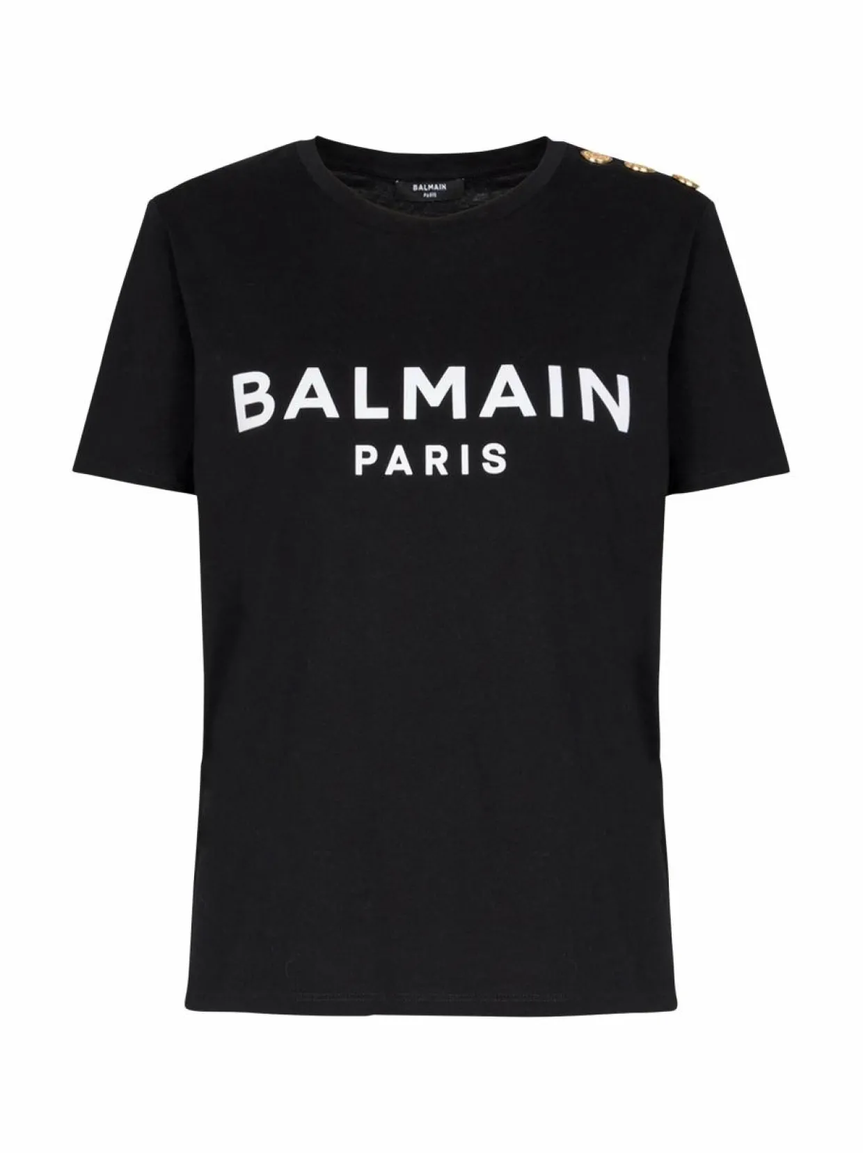 Miellyttävän tuntuinen t-paita on valmistettu luomupuuvillasta. Tyylin viimeistelevät näyttävä logoteksti ja Balmainille ominaiset koristenapit vasemmassa olkapäässä.