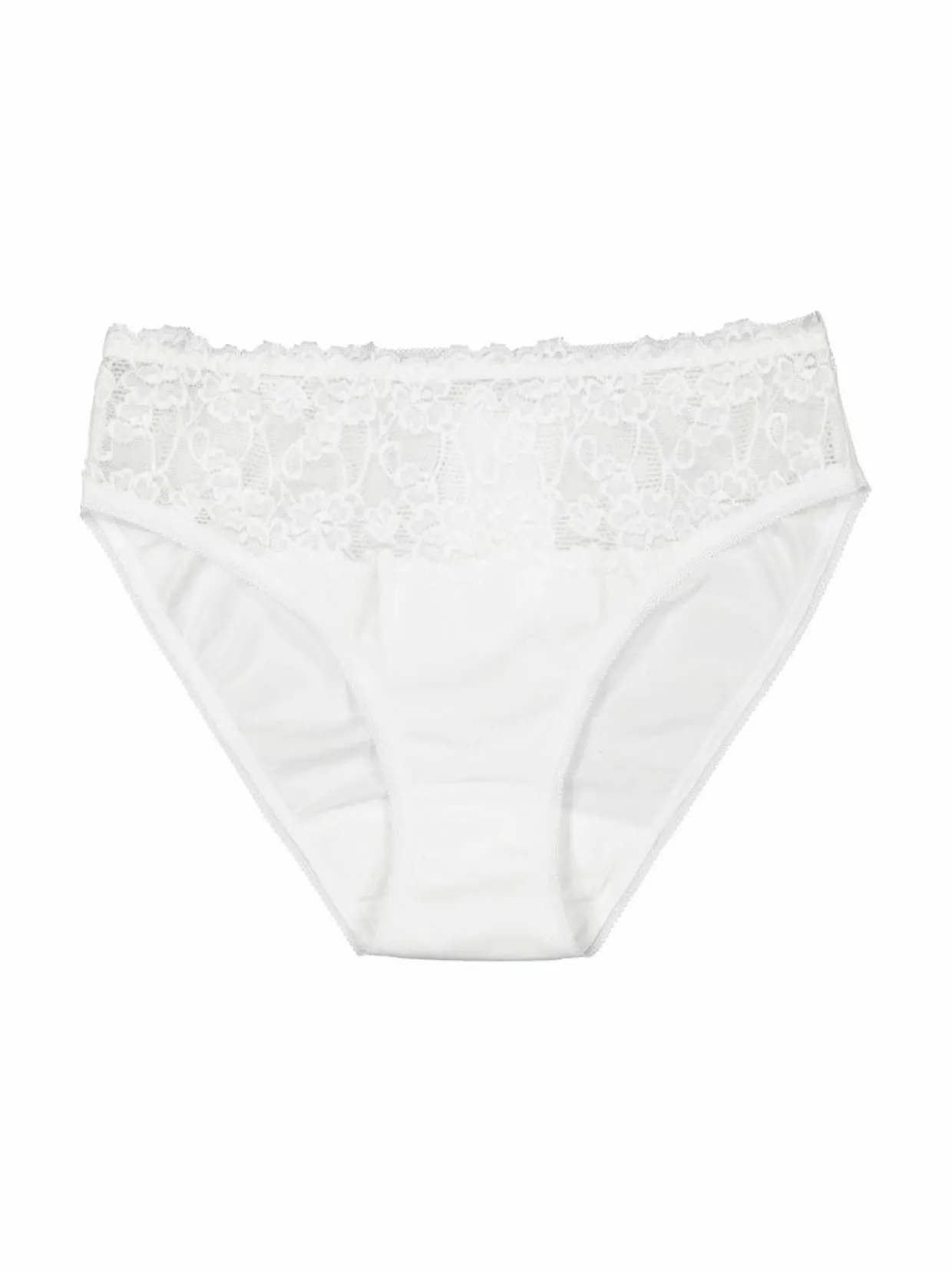 Tai-mallisissa alushousuissa on kaunista läpikuultavaa pitsiä somisteena etupuolella. Pehmeä materiaali on 92 % puuvillaa ja 5 % elastaania. Konepesu.