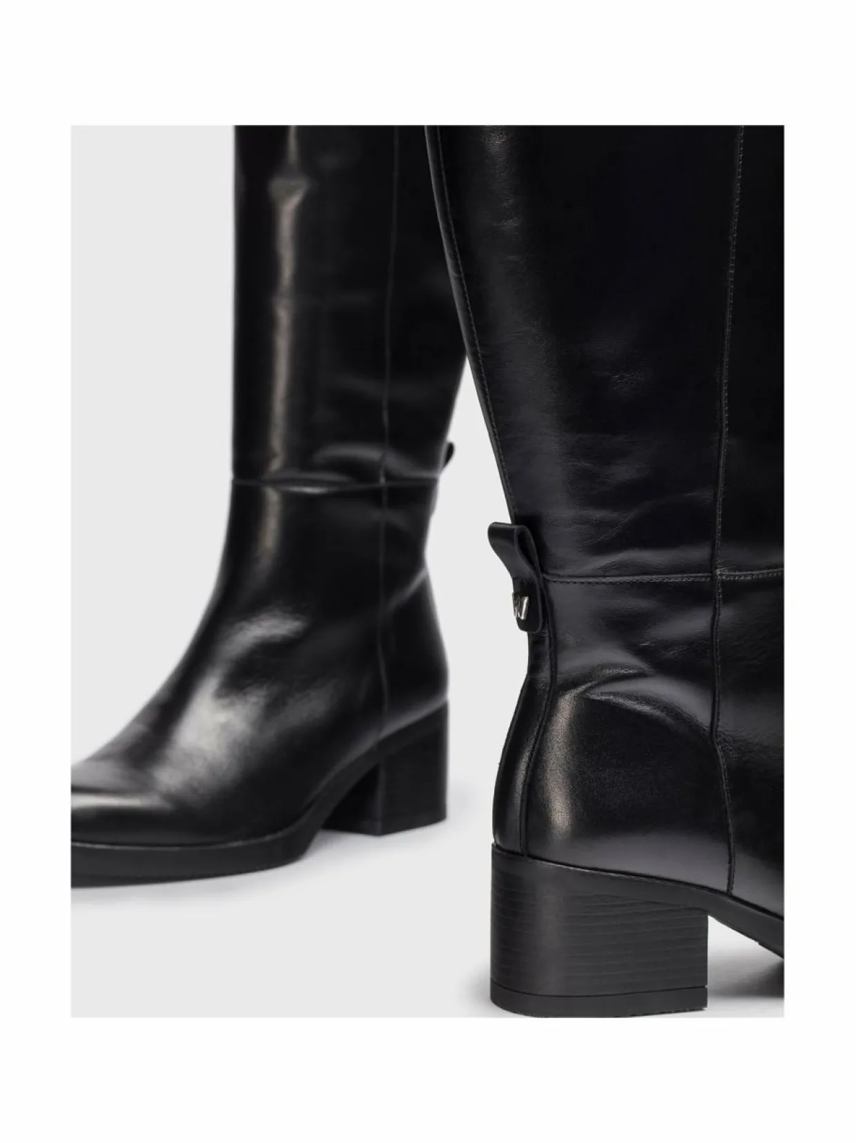 Klassiset pitkävartiset saappaat sopivat täydentämään monia asukokonaisuuksia. Materiaali on laadukasta nahkaa. Tyylin yksityiskohtiin kuuluvat pyöristetyt kärjet ja tolppakorot.