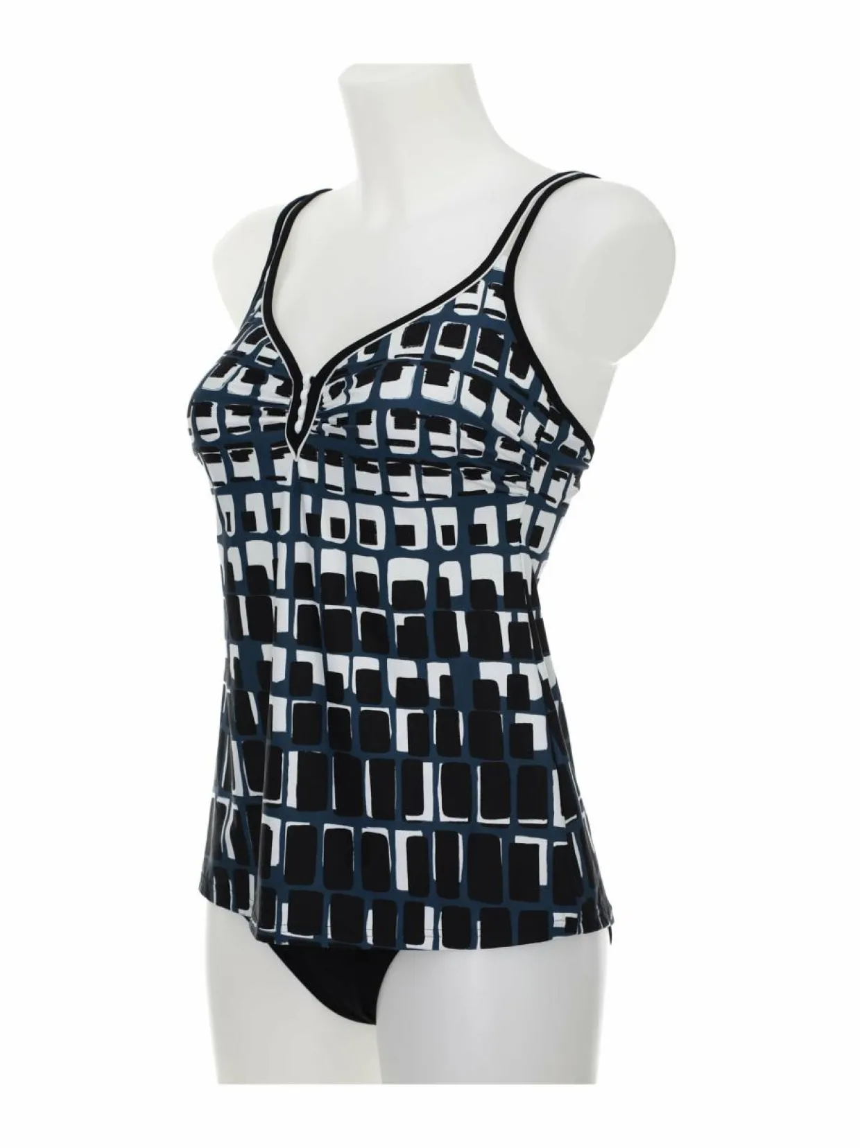 Elegantissa Tankini-uimapuvussa on kevyt toppaus ja tukea antava rakenne rinnoille. Olkaimet ovat irrotettavat ja säädettävät.