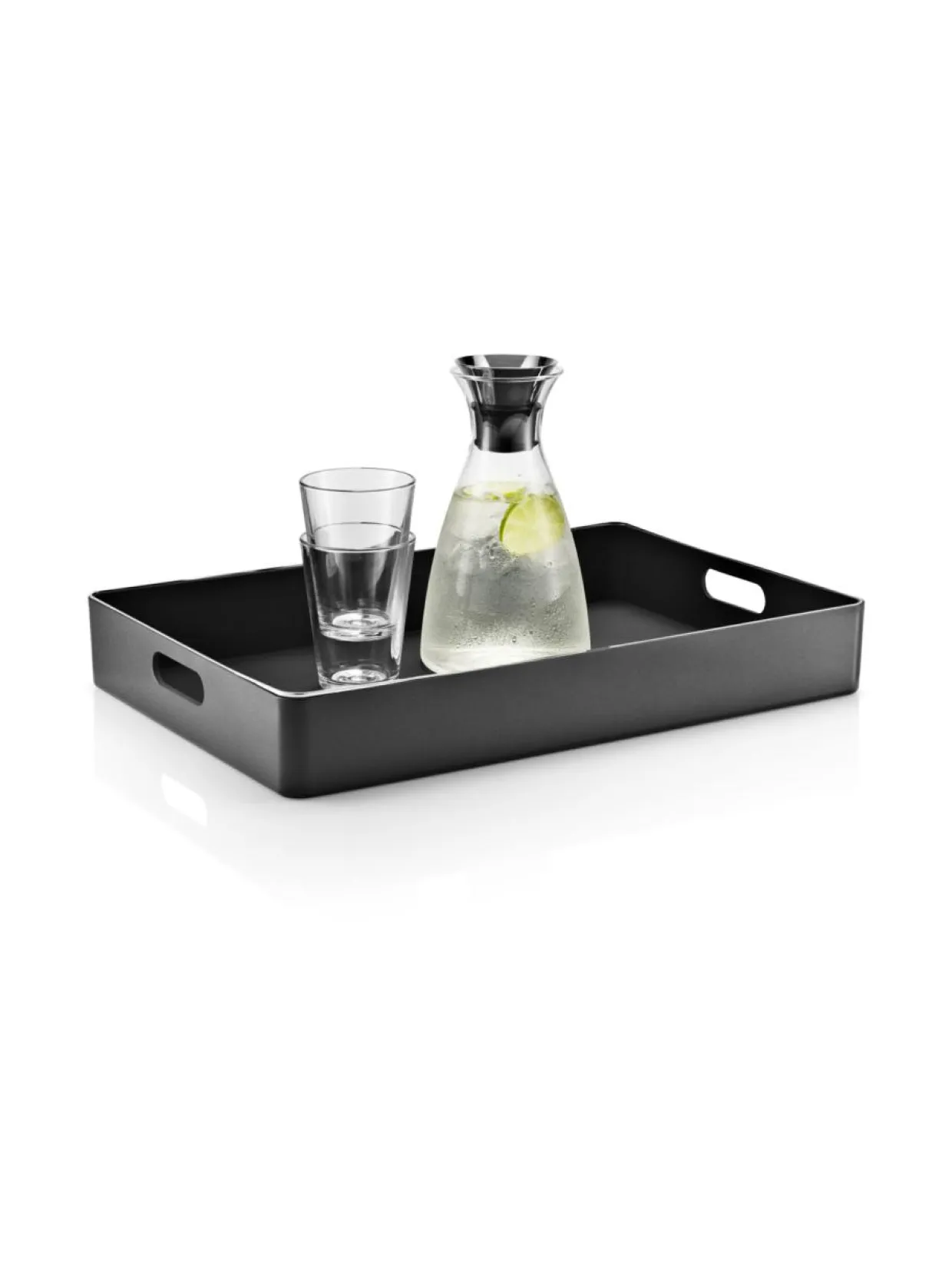 Eva Solo -tarjottimilla tarjoilet tyylikkäästi sekä kylmät että kuumat tarjottavat – tarjottimet sopivat erinomaisesti yhteen muiden Eva Solo -tuotteiden kanssa. Korkealaitaisessa tarjottimessa on kantoaukot käsille. Muovia ja terästä, kaksi väriä.